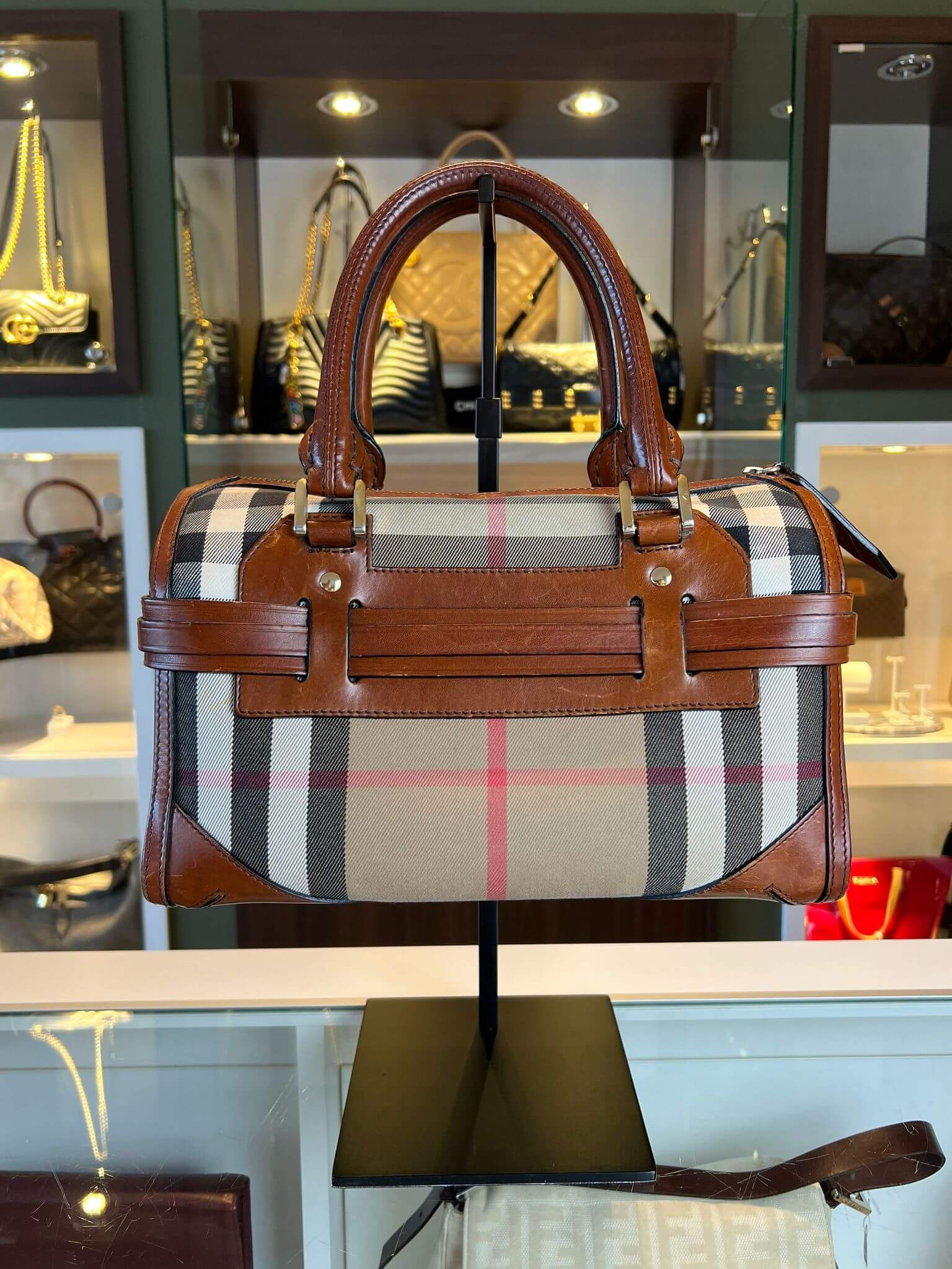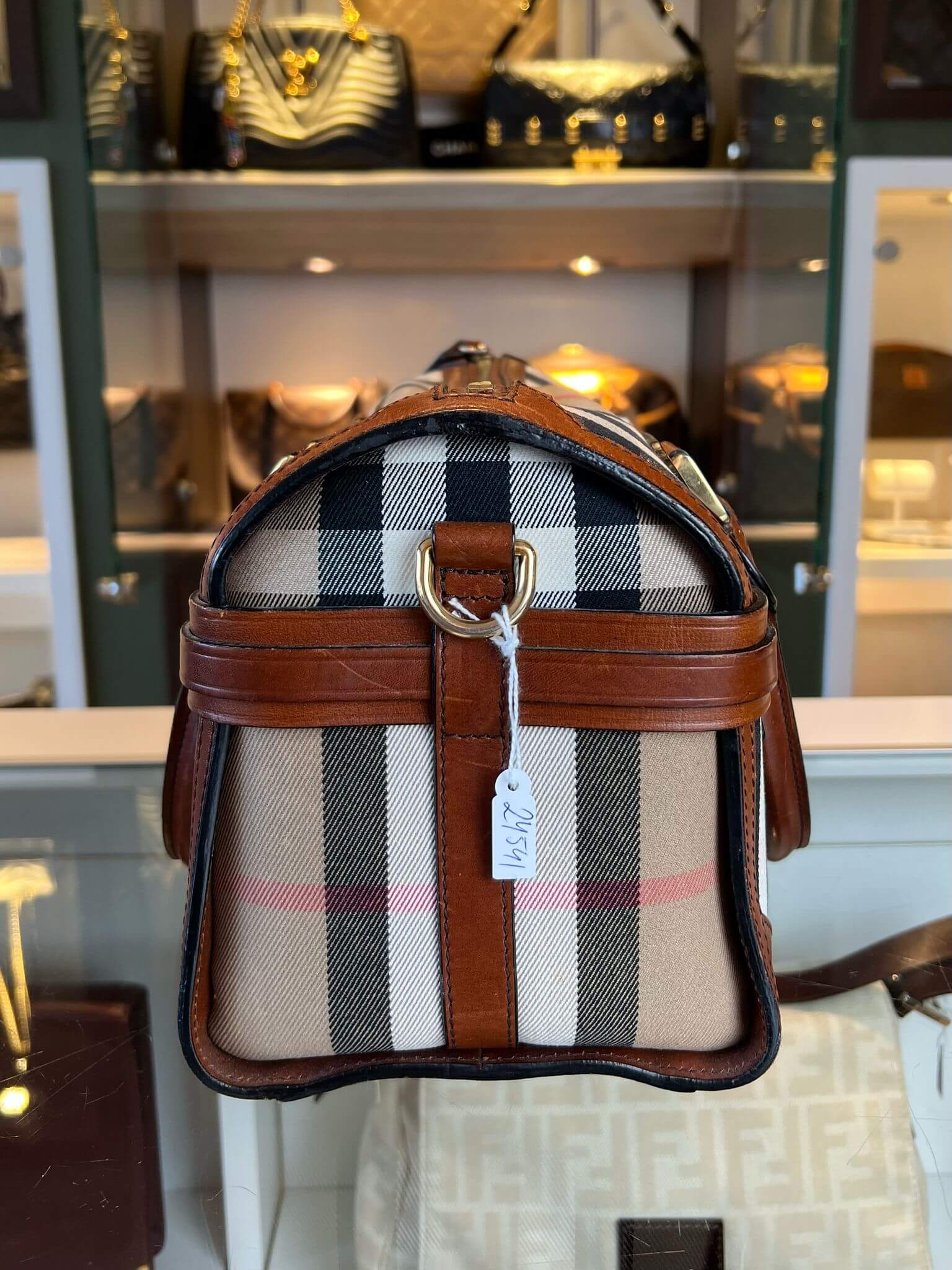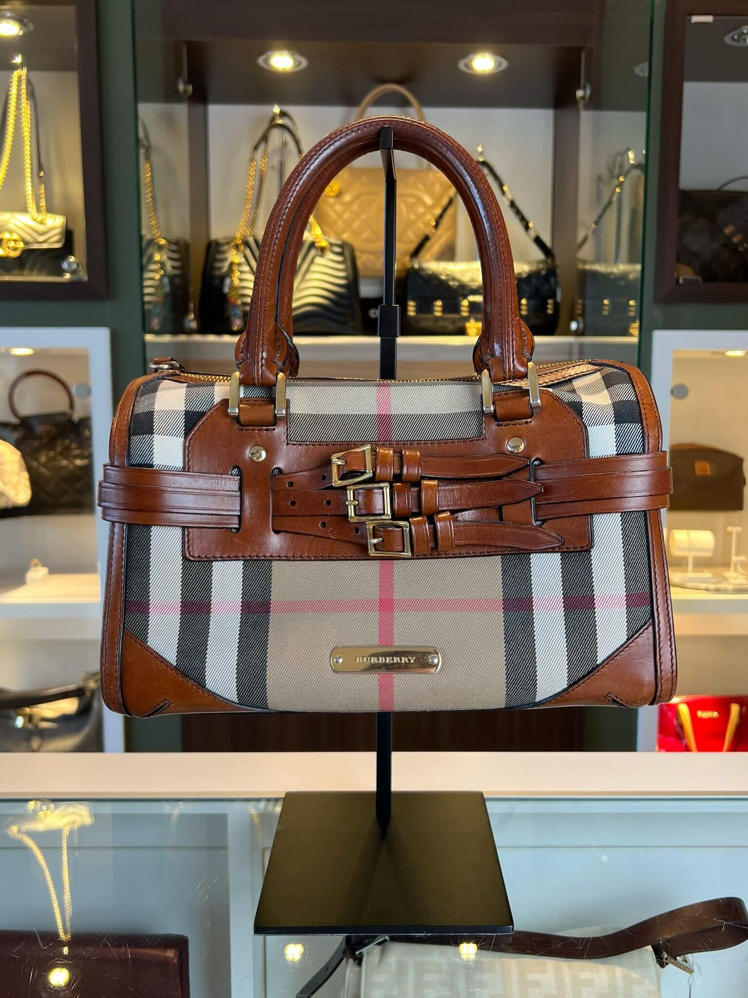Gave Burberry Bridle Bag met 3 lederen ceinturen aan de voorkant. Ookwel een Boston bag genoemd. Het interieur is 1 hoofd compartiment met aan de zijkant een vakje met een rits. Ze is in een zeer goede staat.