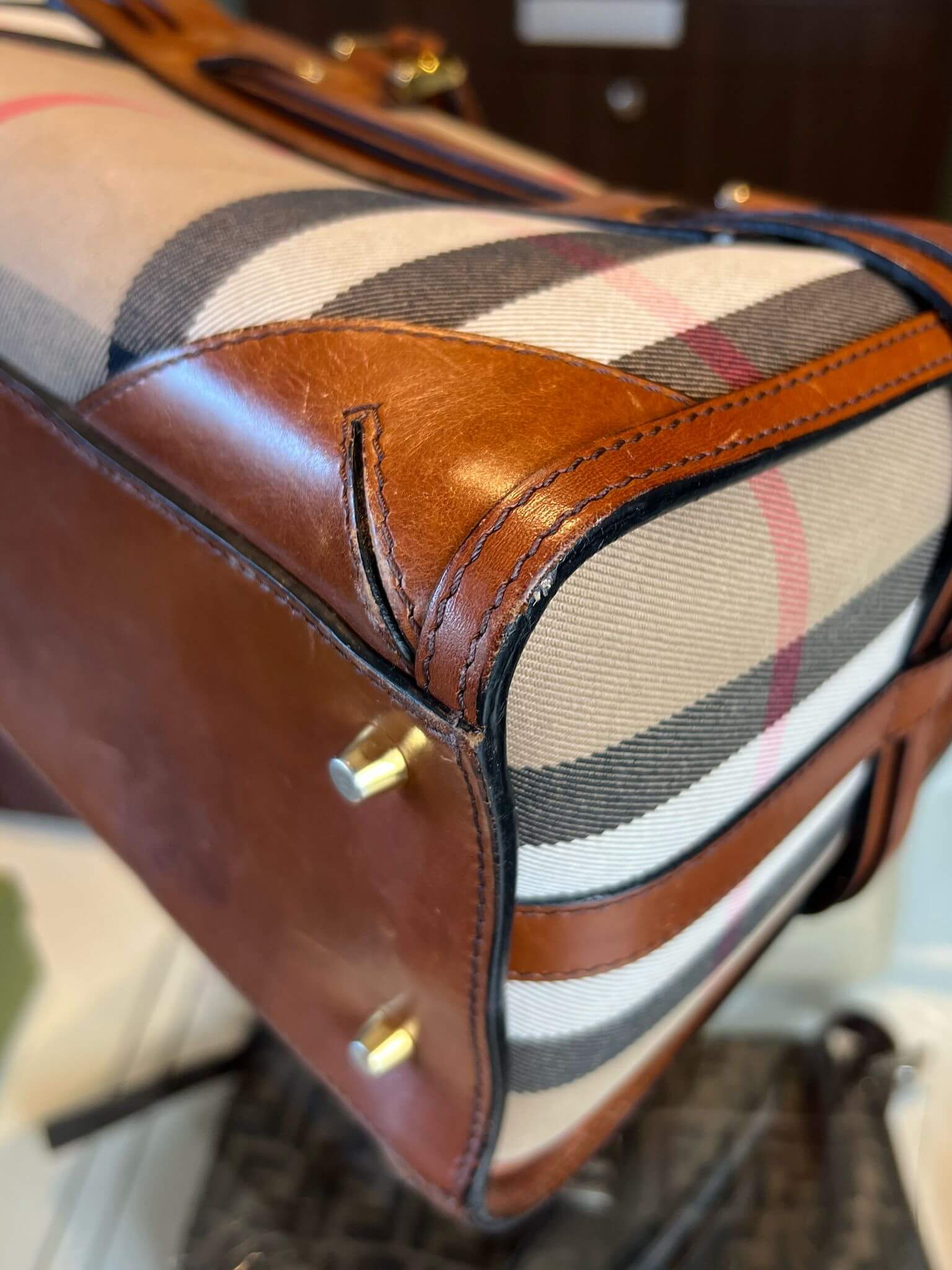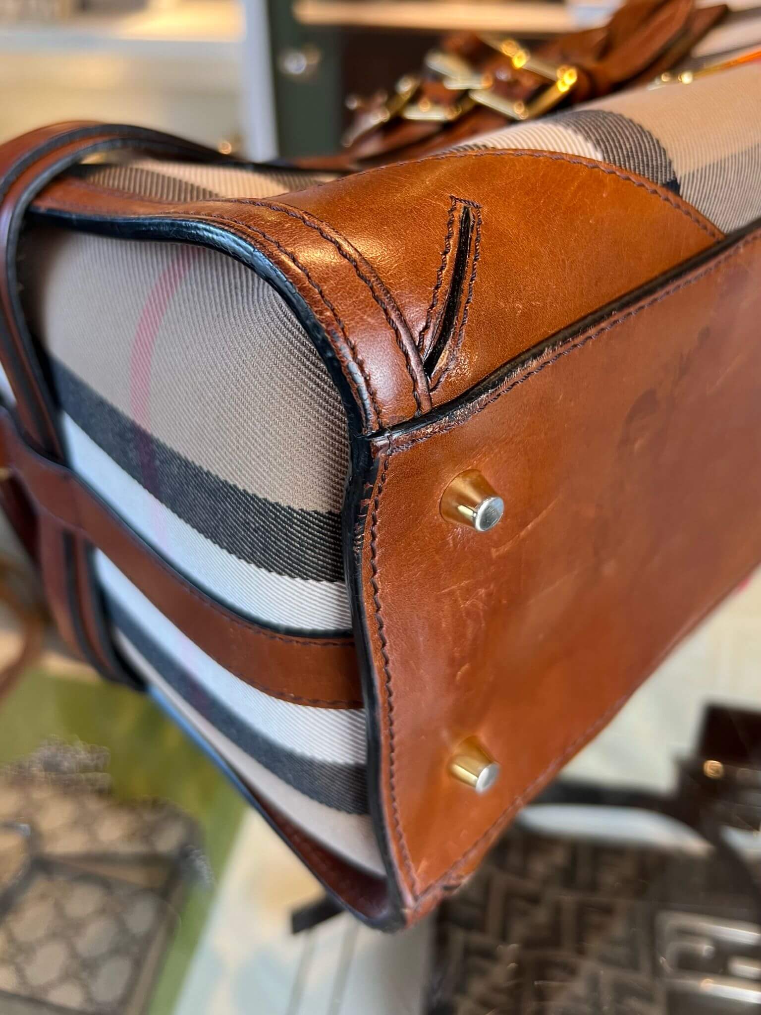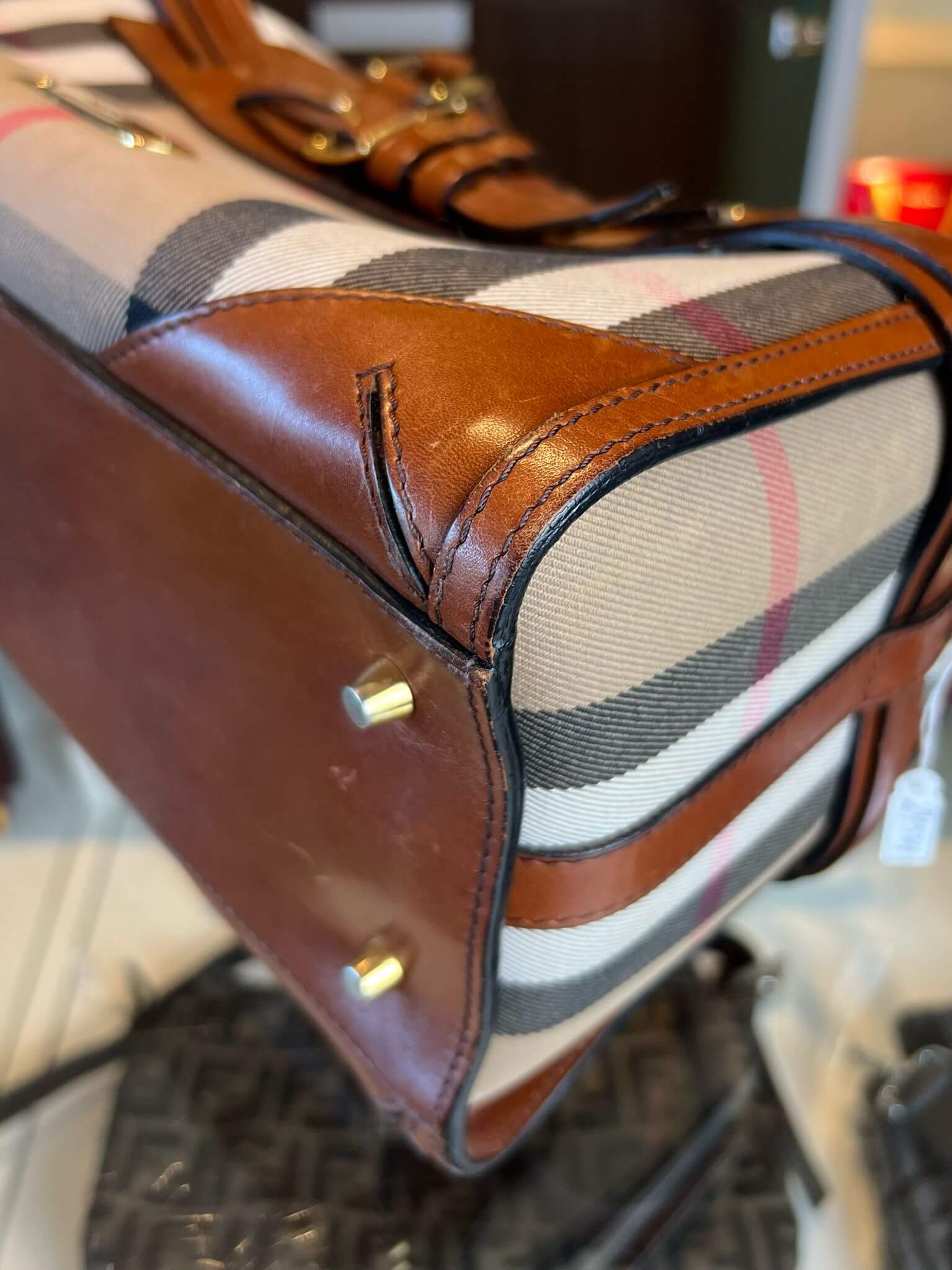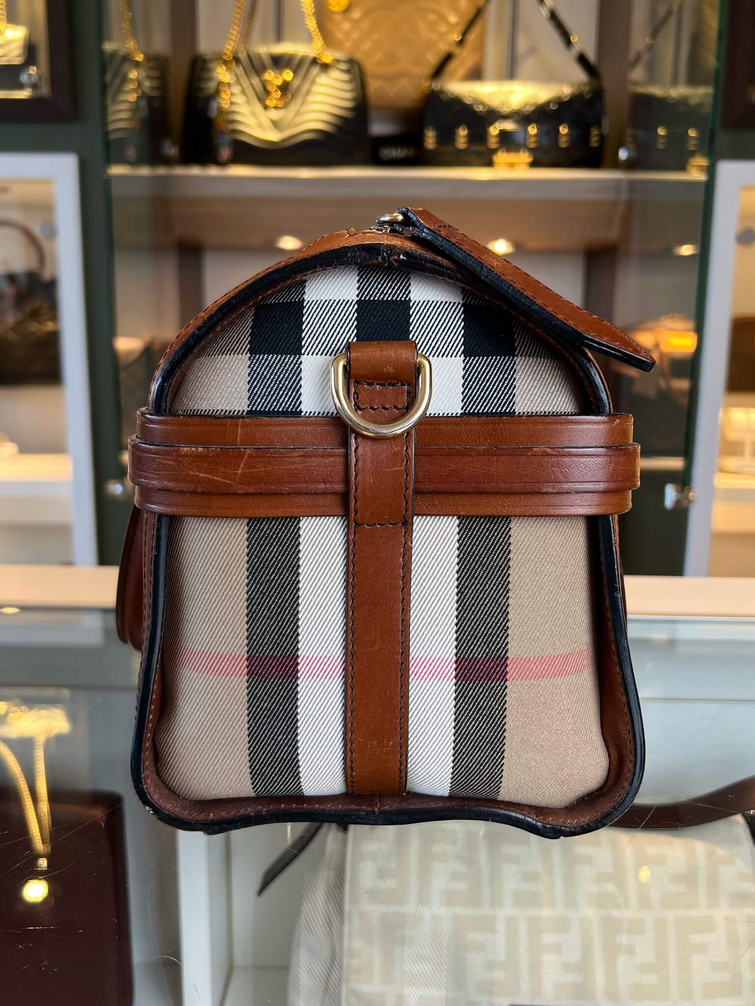 Gave Burberry Bridle Bag met 3 lederen ceinturen aan de voorkant. Ookwel een Boston bag genoemd. Het interieur is 1 hoofd compartiment met aan de zijkant een vakje met een rits. Ze is in een zeer goede staat.