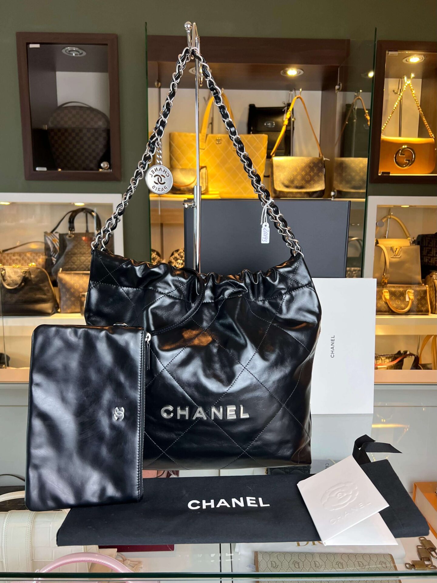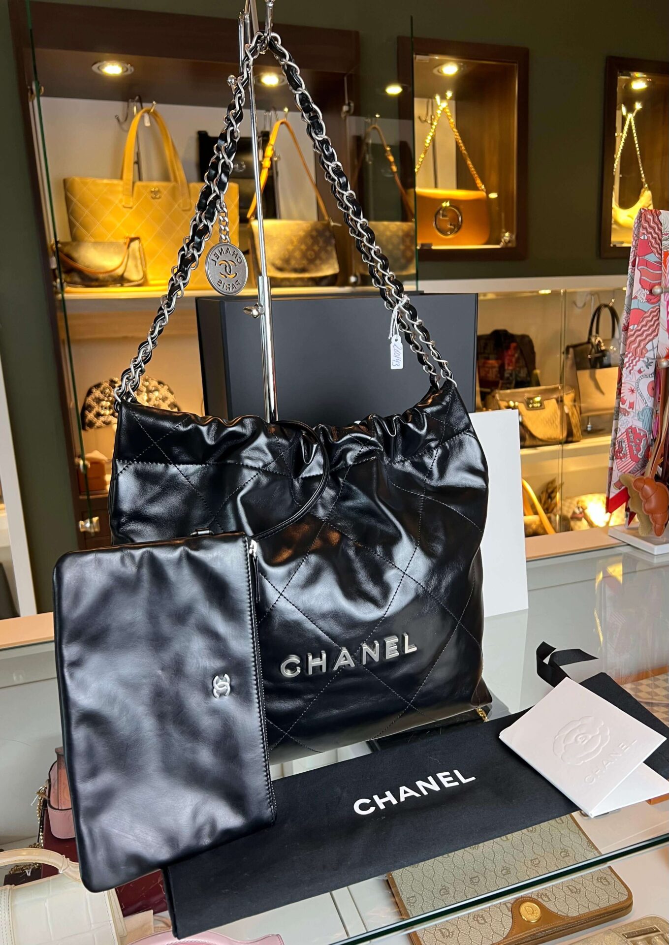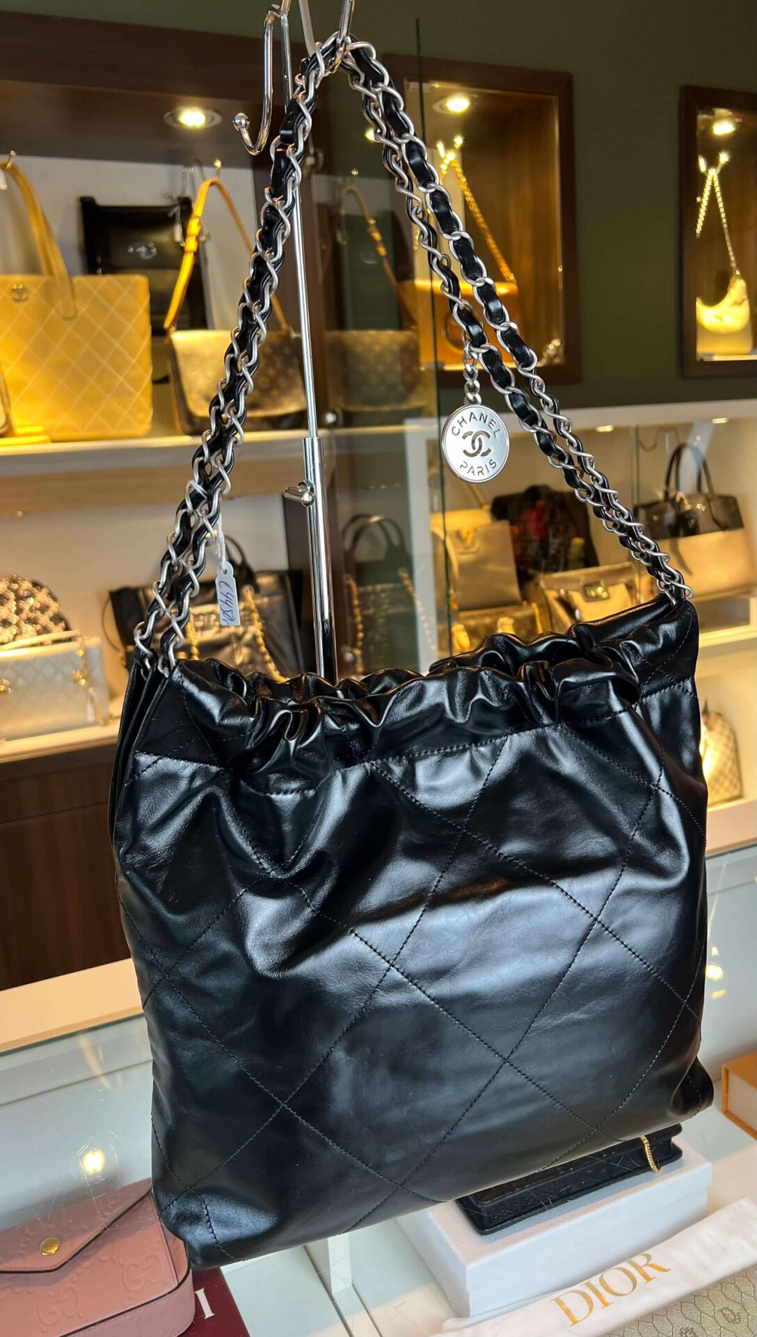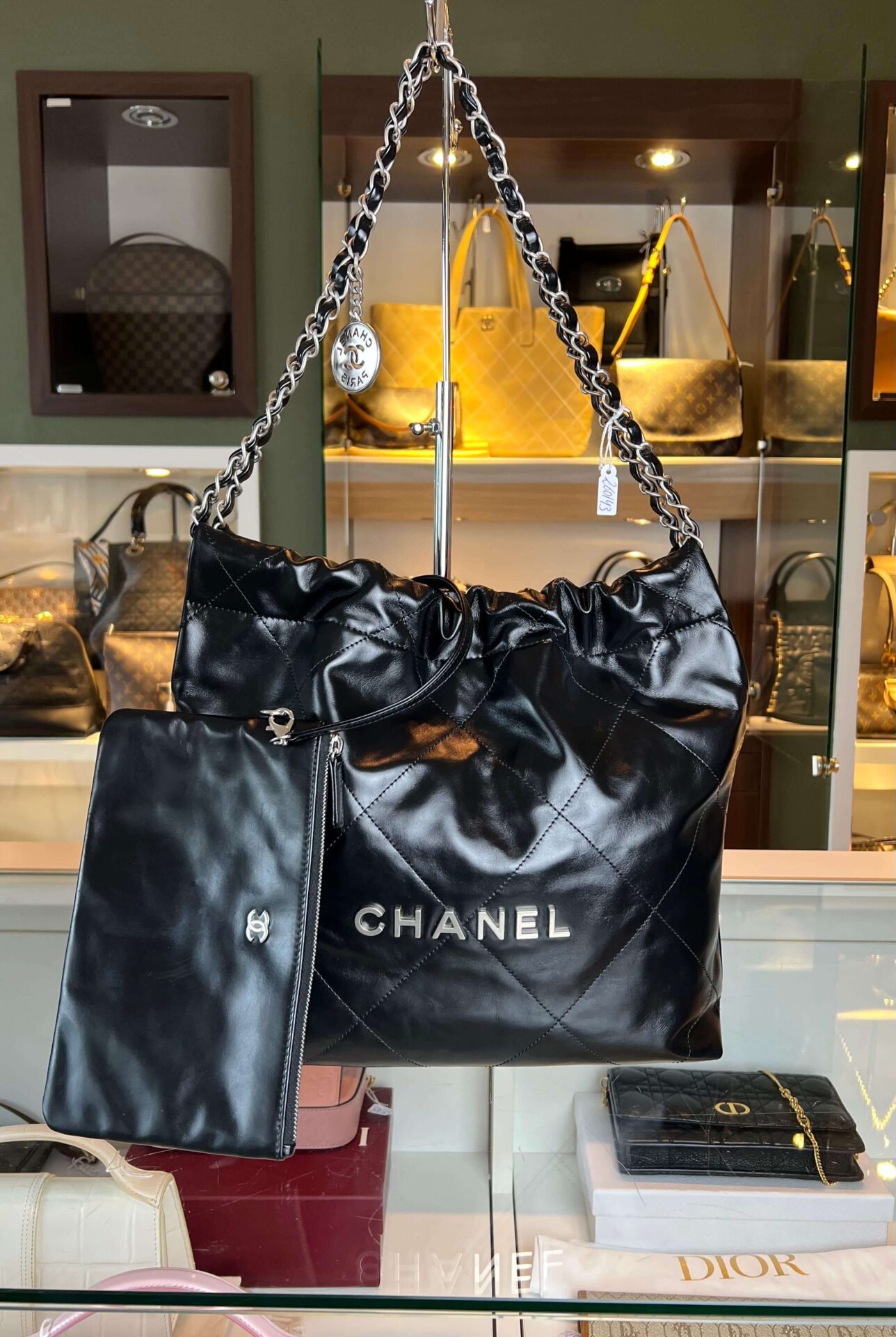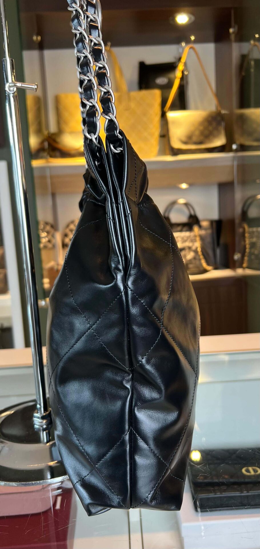 De ontzettend leuke Chanel 22 Hobo Small in mooi glanzend kalfsleder met zilveren hardware in nieuwstaat! Alle stickers zitten nog op de hardware. Ze komt uit 2024 in een volledig full set met Entrupy certificaat.