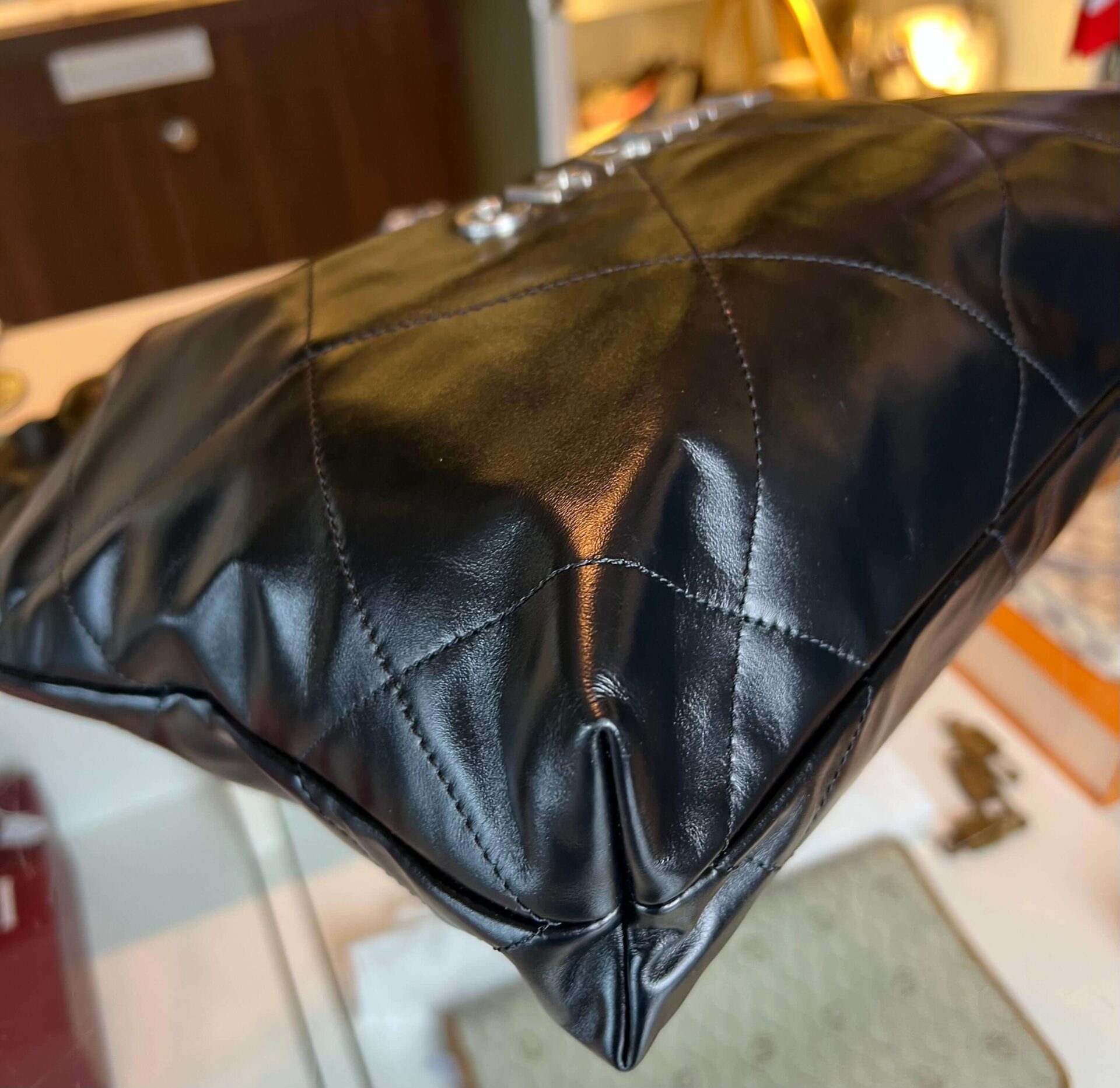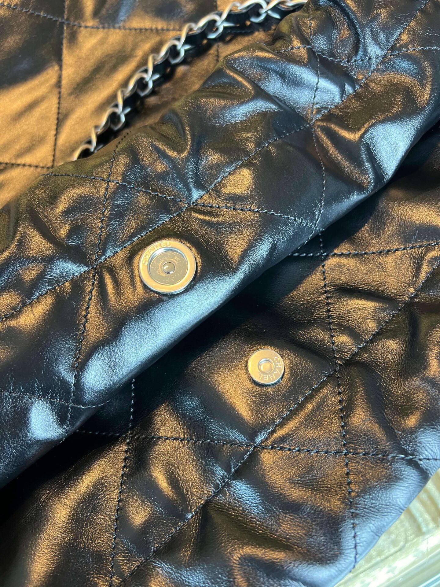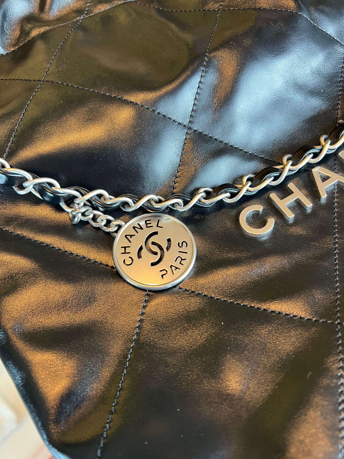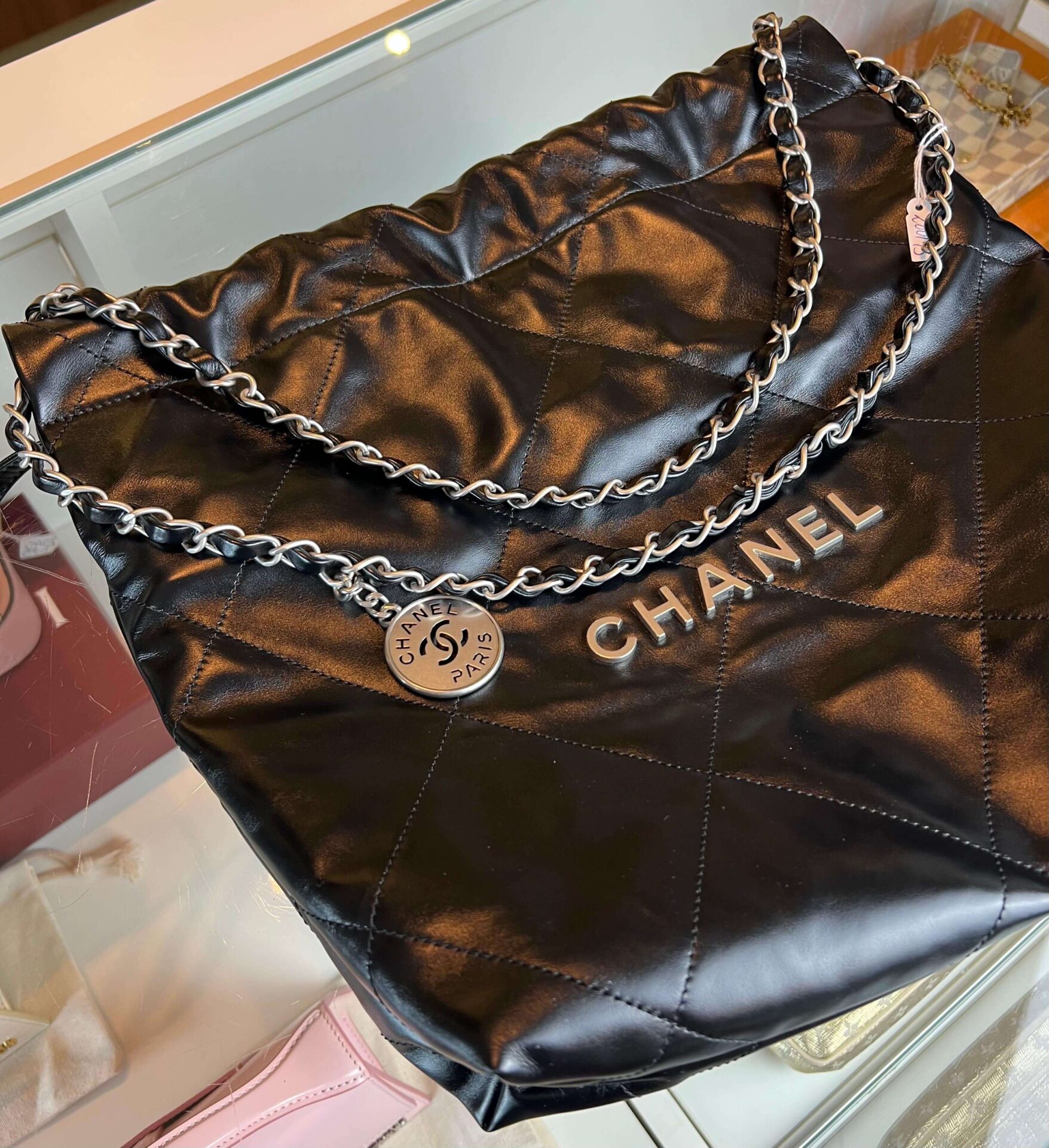 De ontzettend leuke Chanel 22 Hobo Small in mooi glanzend kalfsleder met zilveren hardware in nieuwstaat! Alle stickers zitten nog op de hardware. Ze komt uit 2024 in een volledig full set met Entrupy certificaat.