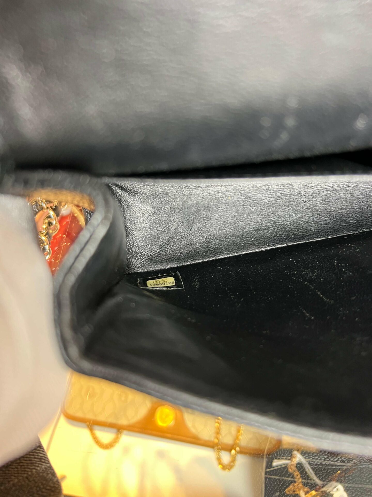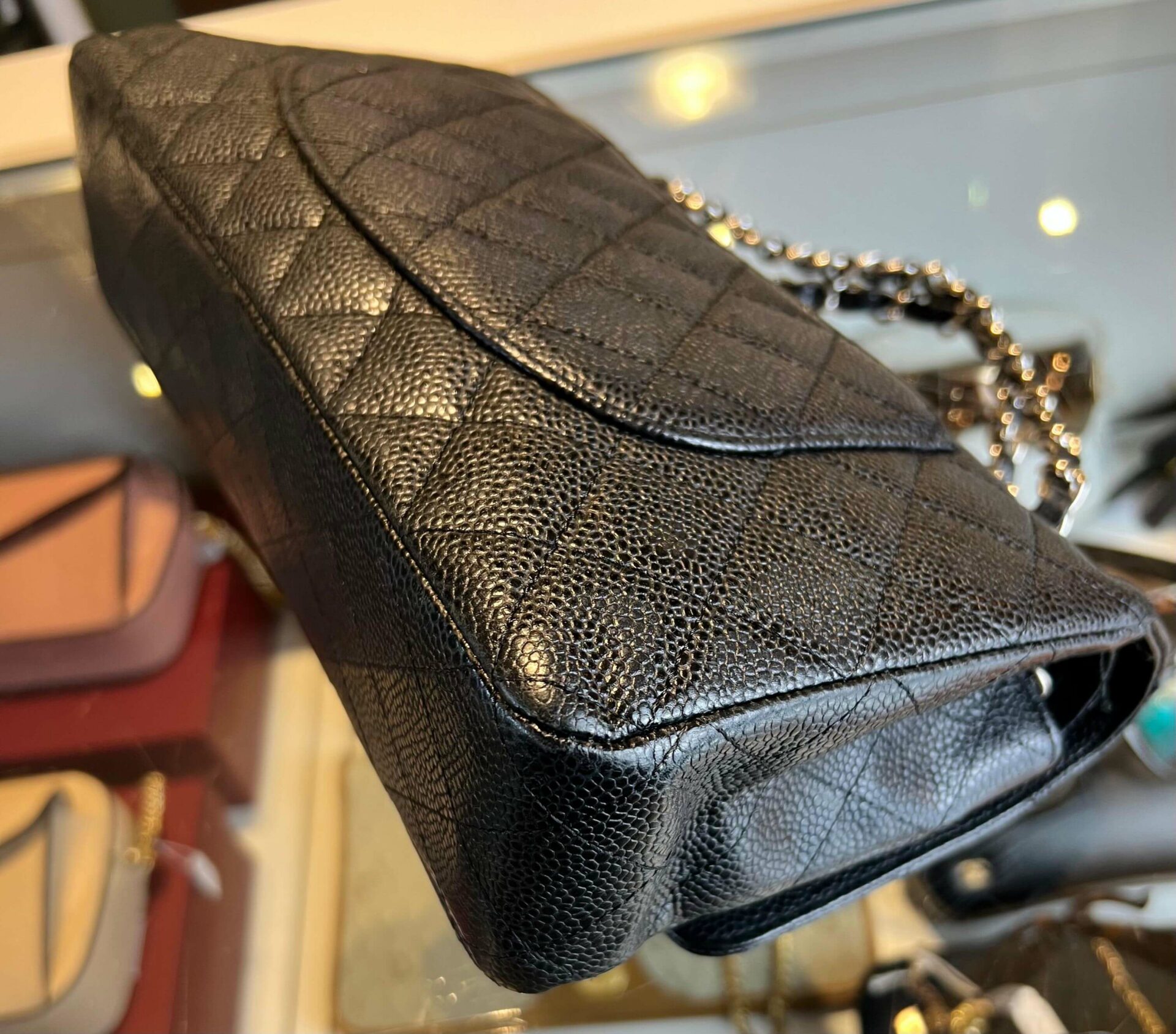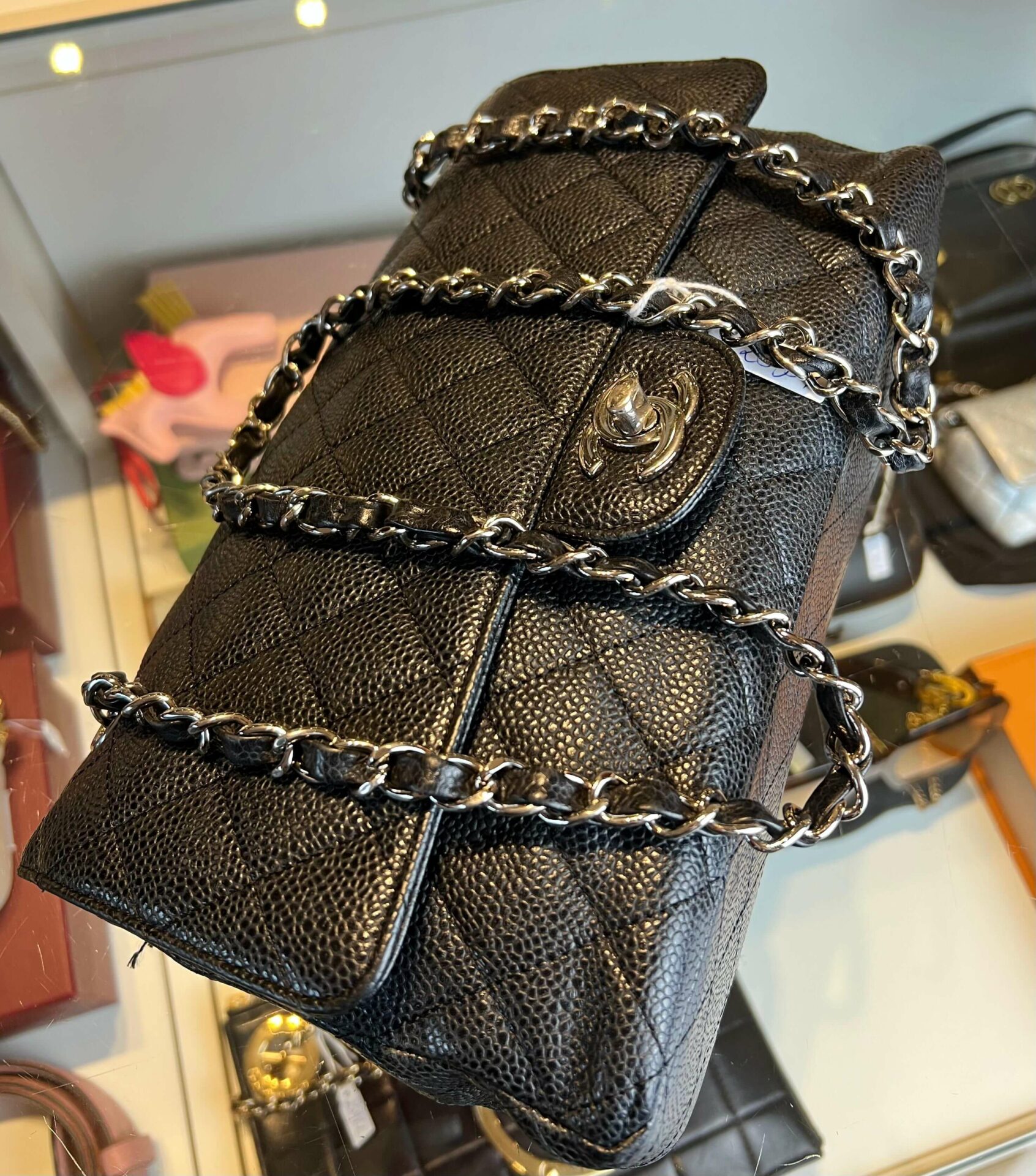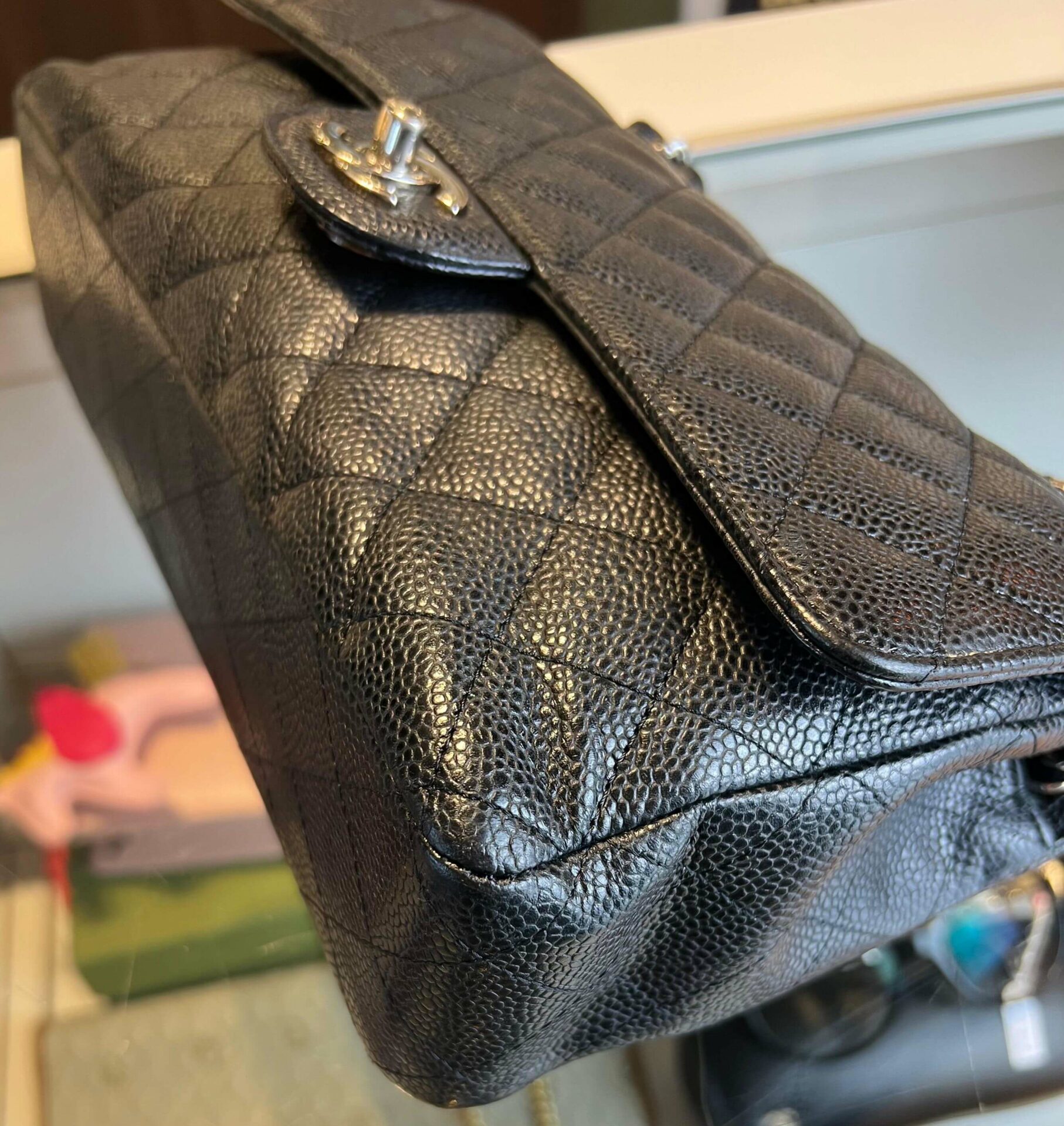 Chanel Classic Double Flap Bag Medium, in zwart kaviaarleder met zilveren hardware een zwart lederen interieur. Ze is een 13 serie wat betekent dat ze uit het jaartal 2009/2010 komt. Ze komt met de authenticiteit kaart en Entrupy certificaat. Het serienummer is aanwezig en leesbaar. Ze is in een zeer goede staat. Dit model tas is nog met de ‘old caviar’ leder. Dit betekent dat de tas nog het dikke, stevige kaviaar leder heeft met een matte korrel. De Chanel past crossbody, maar is ook prachtig als schoudertas.