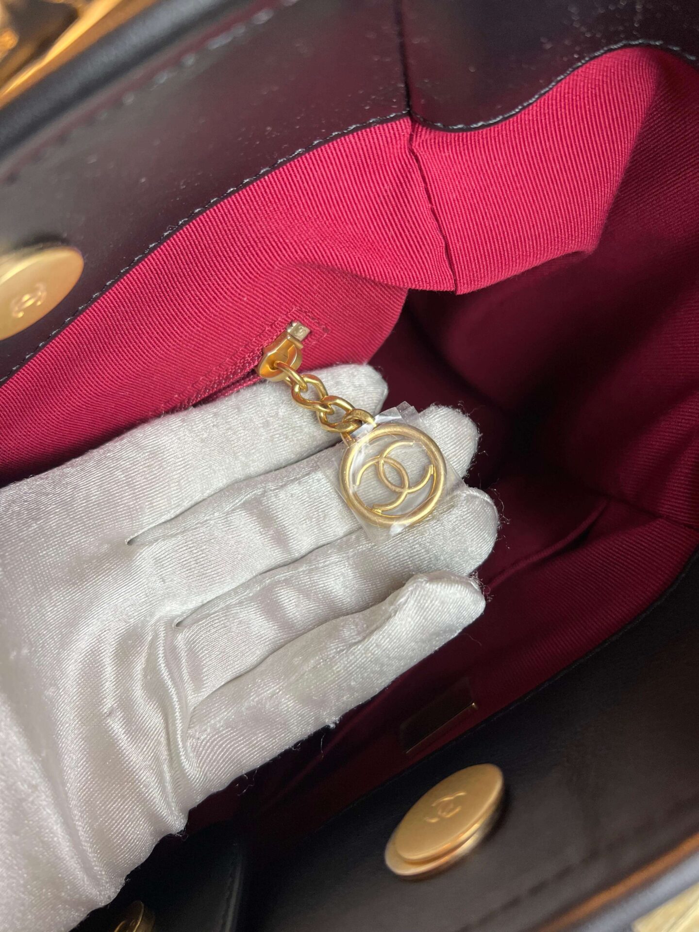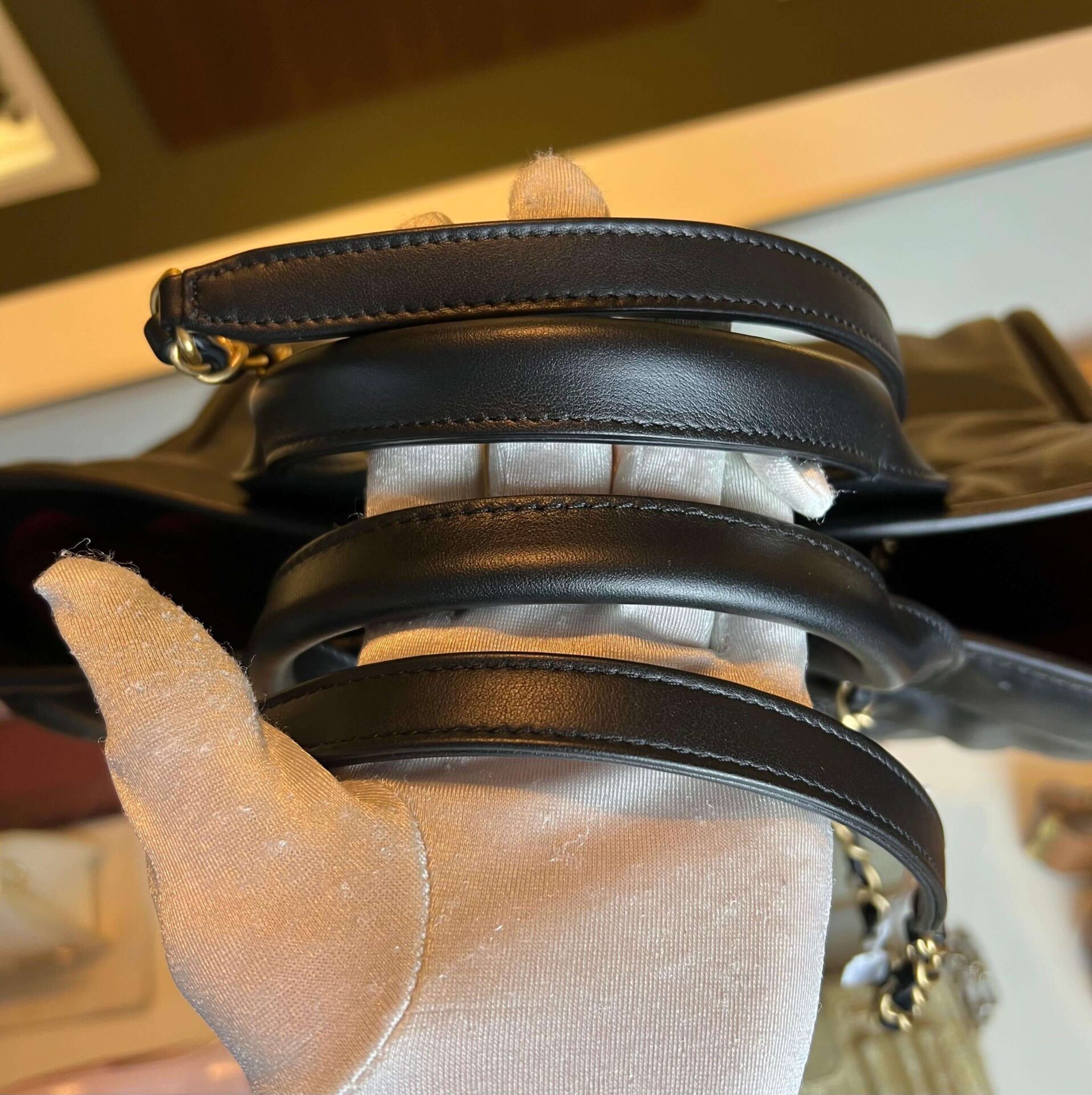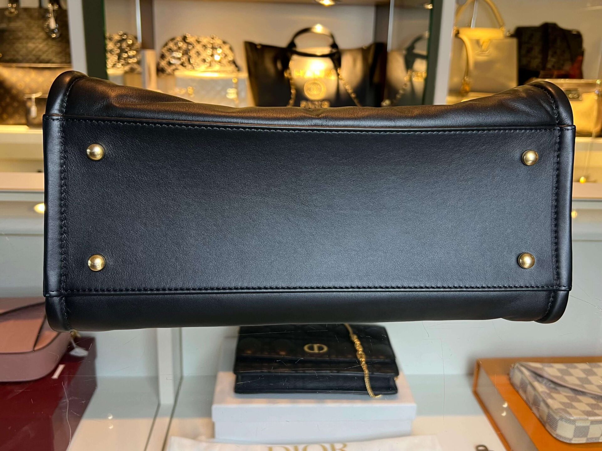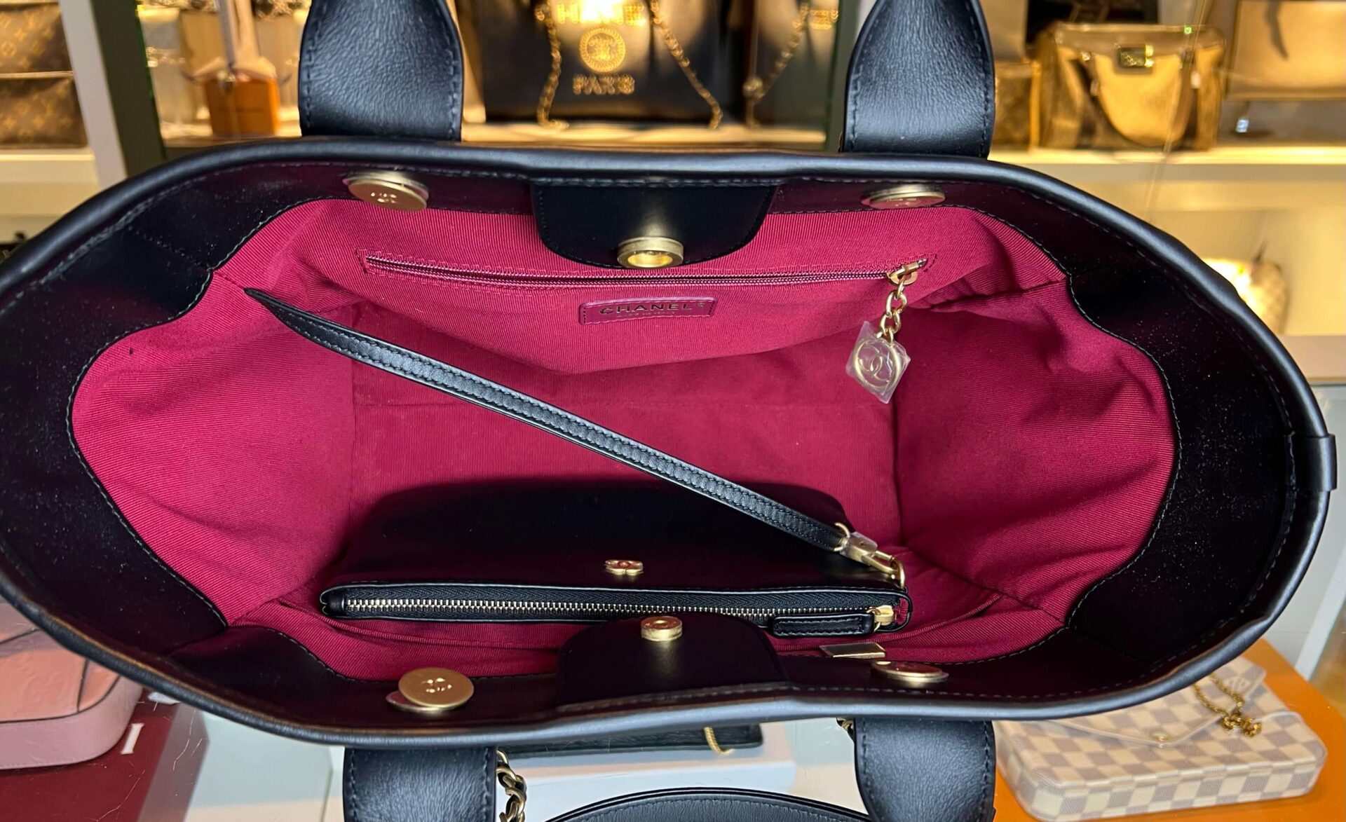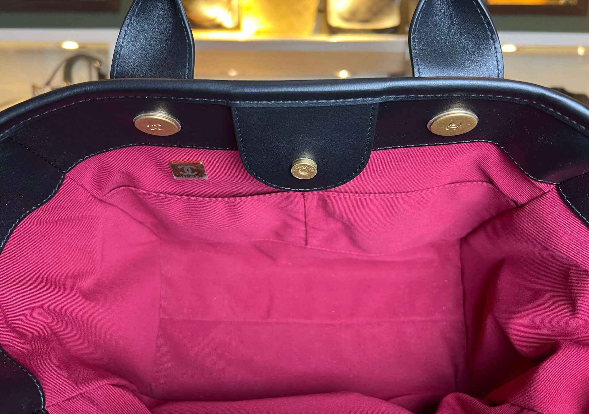 Een full set van deze prachtige Chanel Deauville in volledig zwart lamsleder met gouden hardware. De hardware zit nog in de stickers, de tas verkeerd in nieuwstaat. Ze komt uit 2023.
