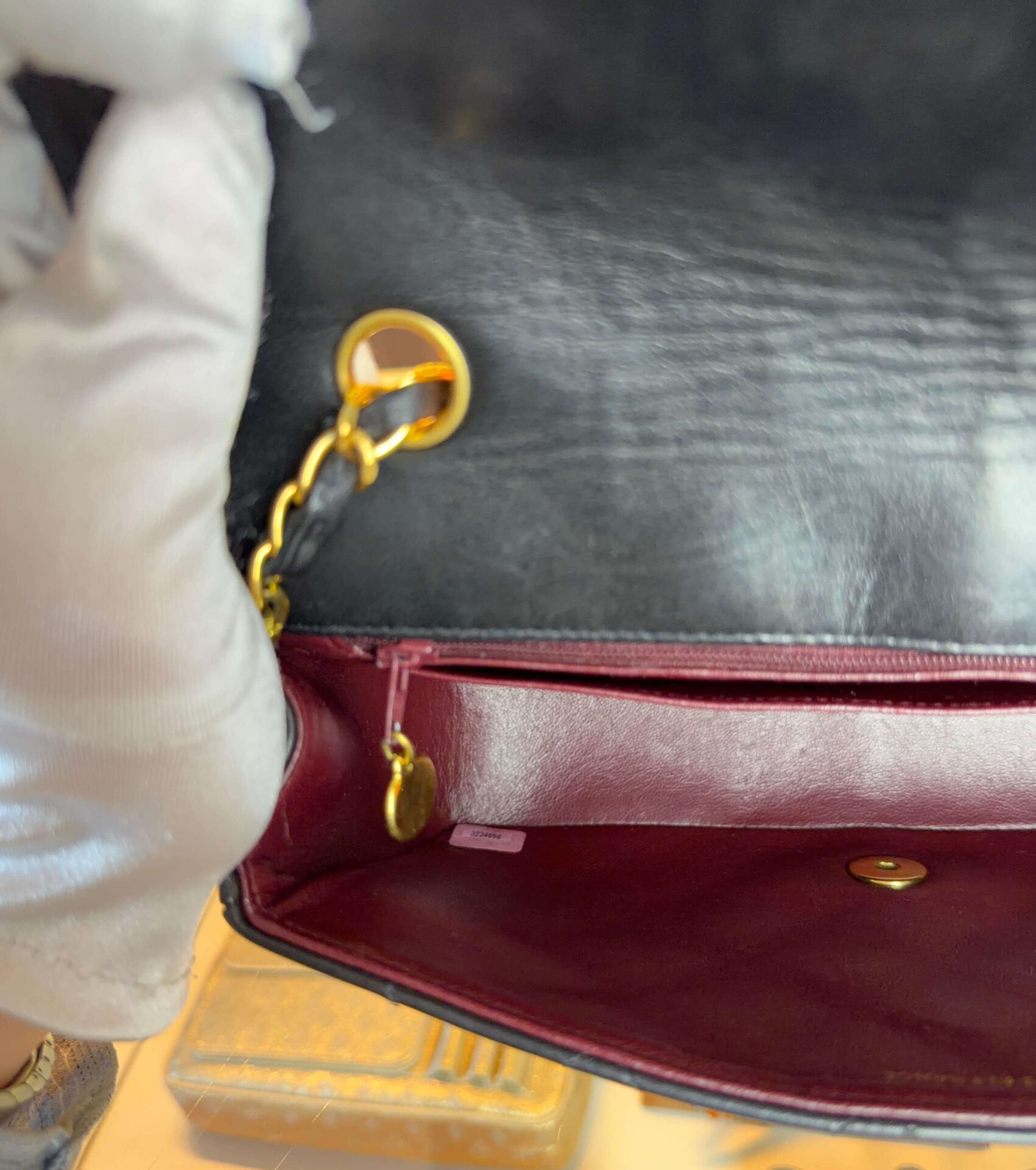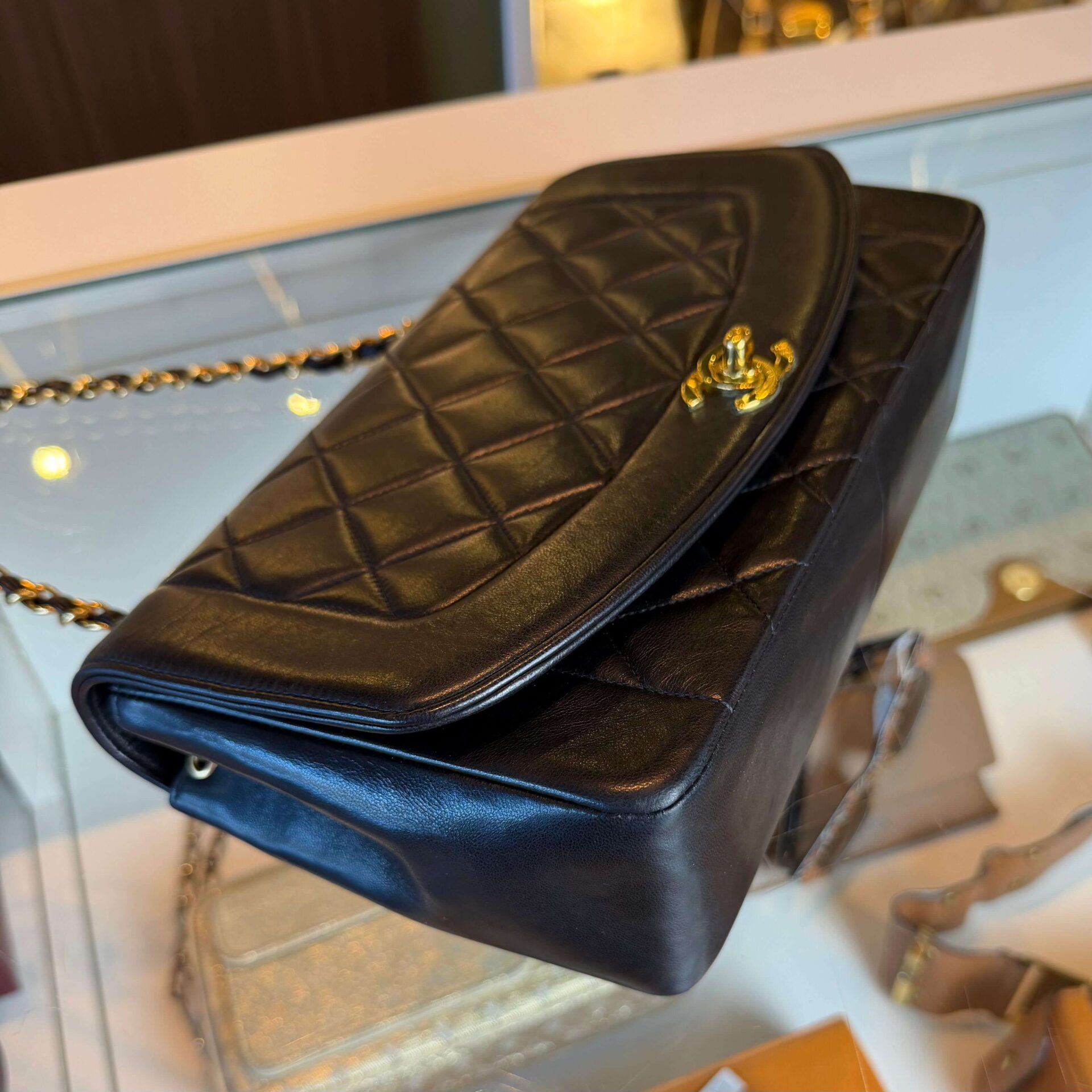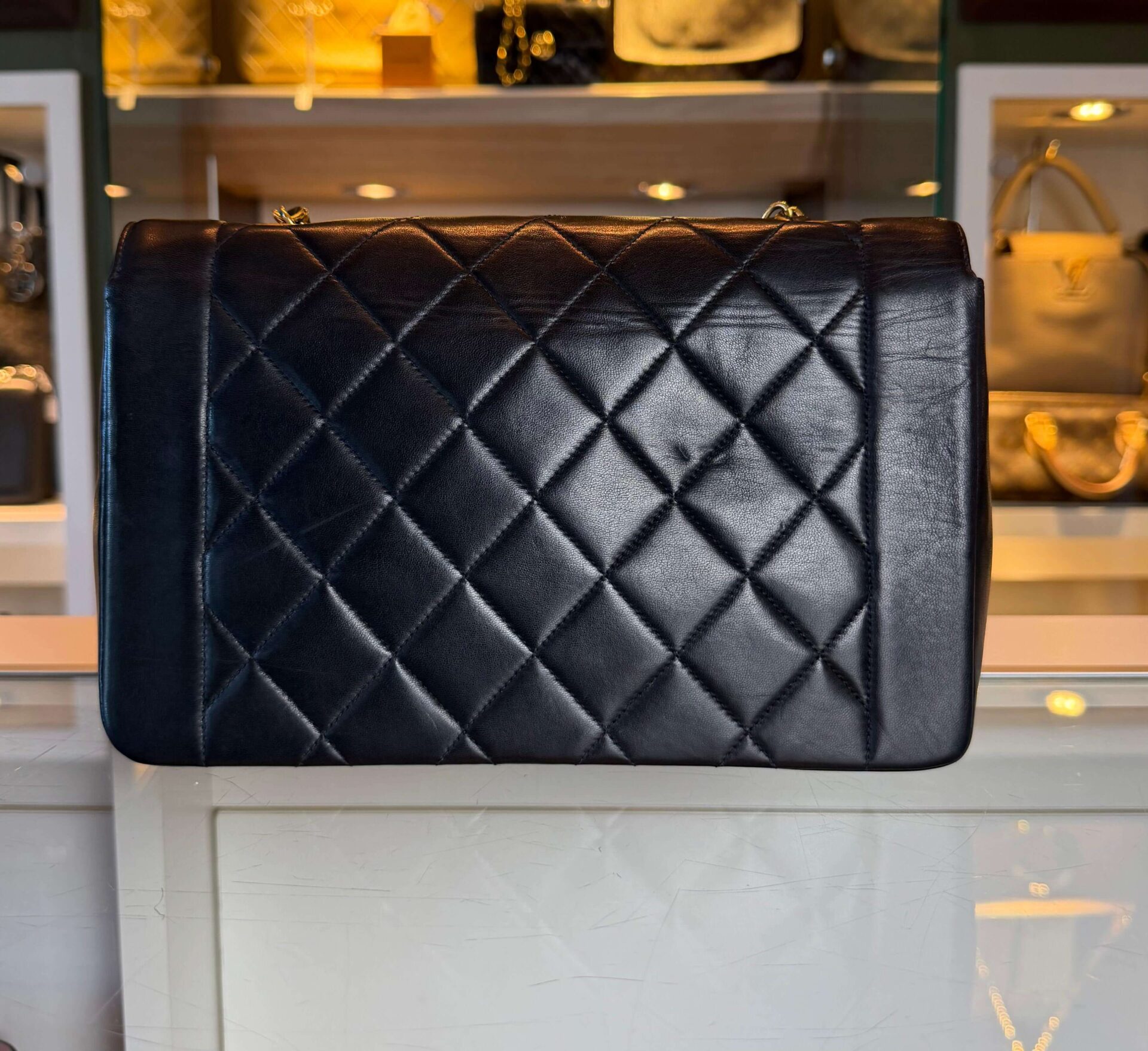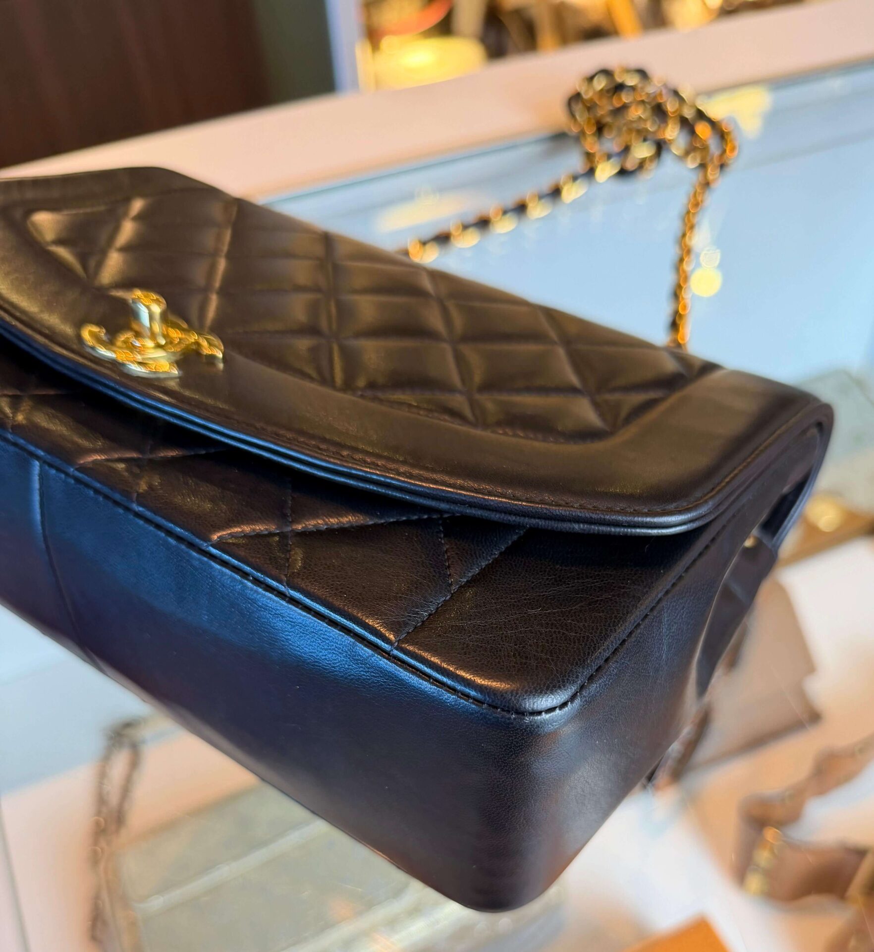 Zeer goede staat Chanel Diana Medium Flap Bag met 24k goud vergulden hardware. Ze kan crossbody en heeft de mooie CC lock. Ze is gemaakt van zwart lamsleder en een mooi rood interieur. Het interieur is volledig schoon en het exterieur is ook zeer netjes. Hologram sticker is aanwezig en het serienummer (3 serie) is leesbaar. Komt met Entrupy certificaat en Rêve stofzak.
