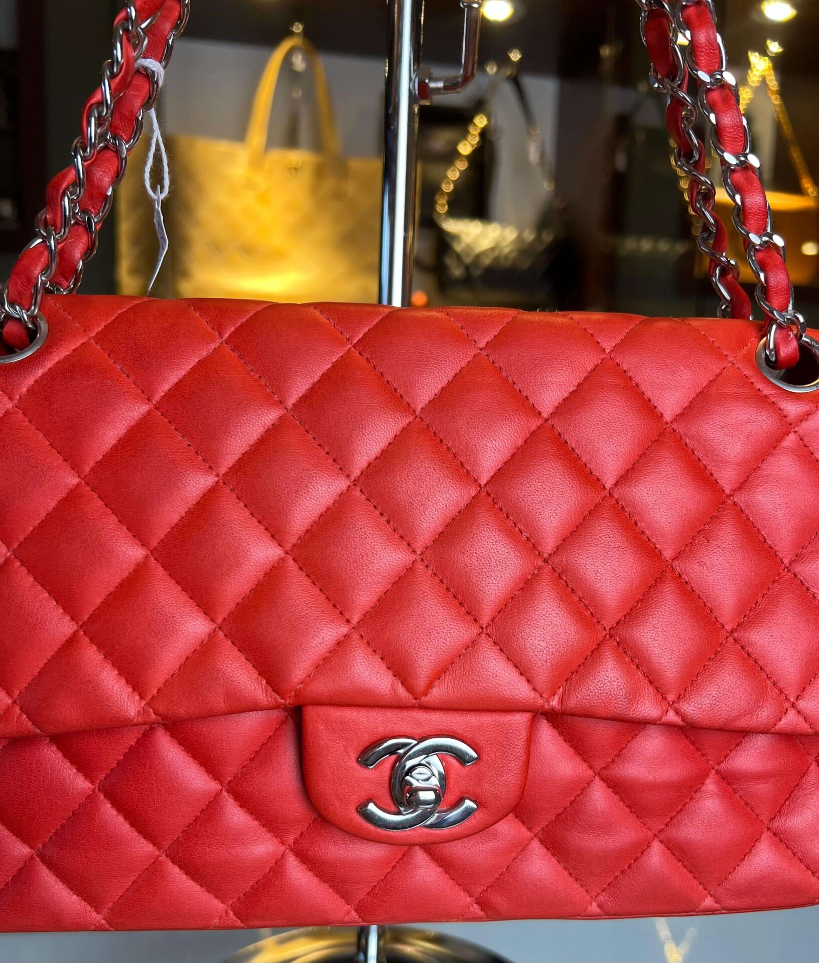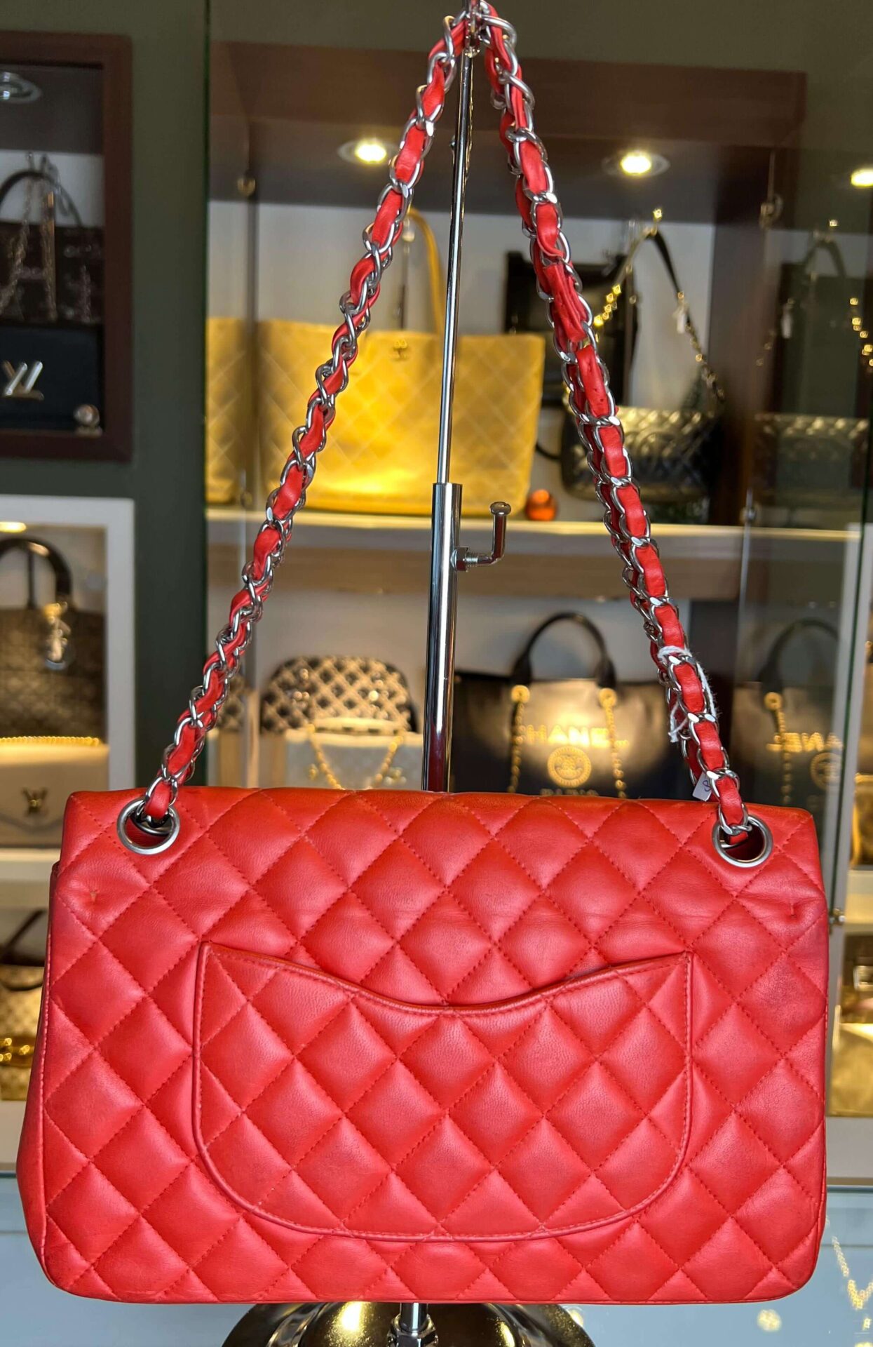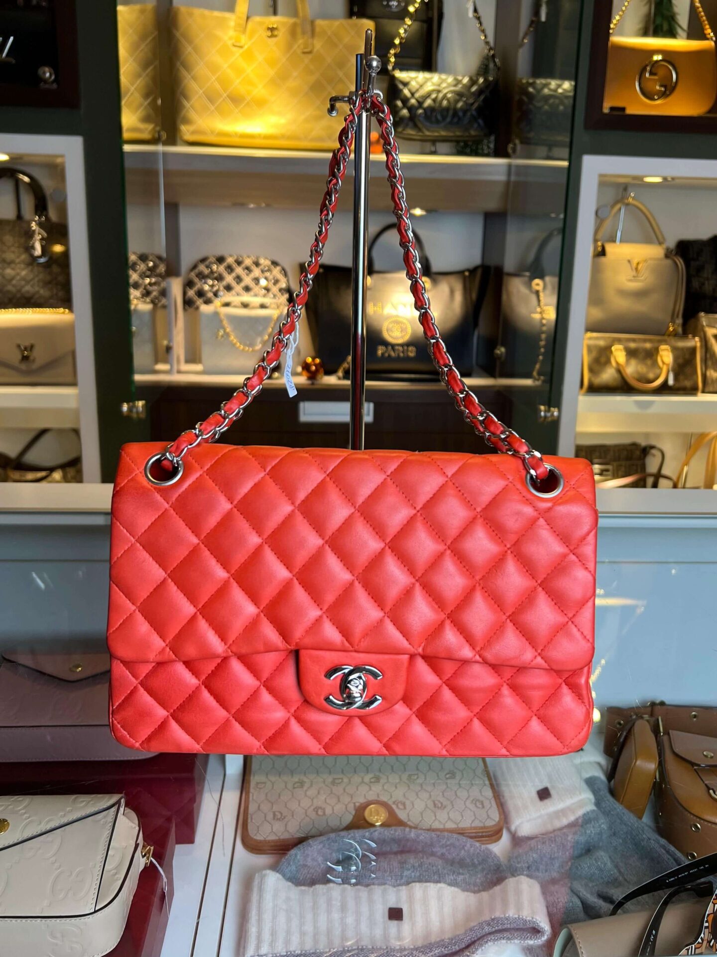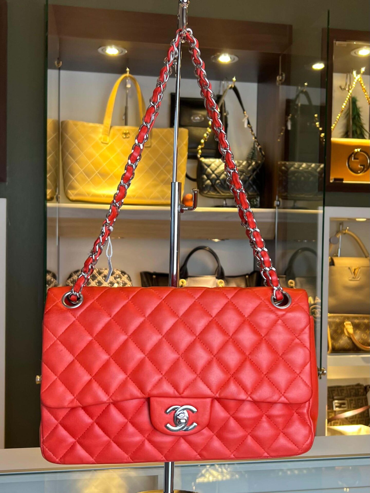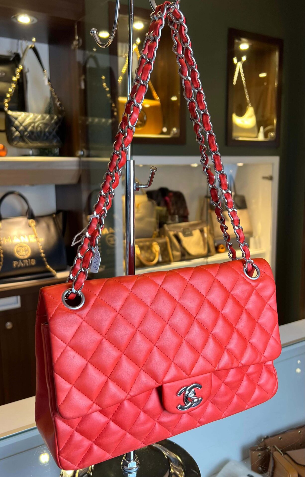 Chanel Single Flap Bag Resort Collection uit het jaartal 2003-2004. Ze is een 8 serie en het serienummer is aanwezig. Ze verkeerd in een goede staat met gebruikerssporen. Ze kan met een dubbele ketting worden gedragen of crossbody.