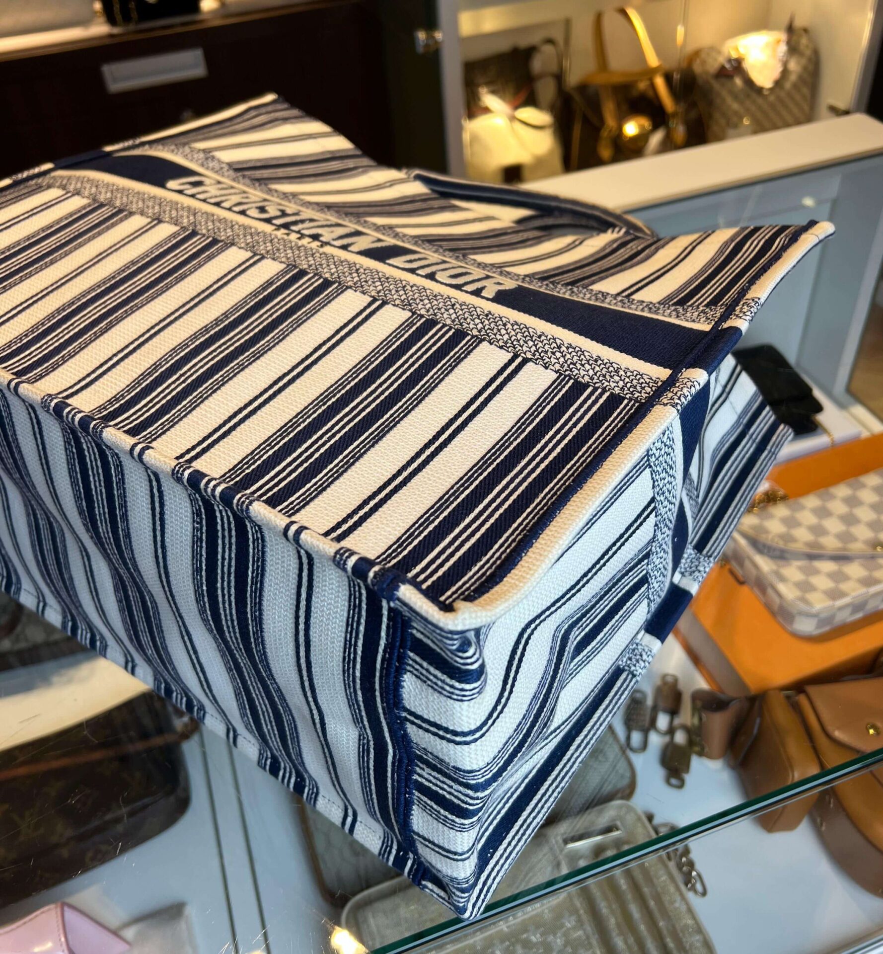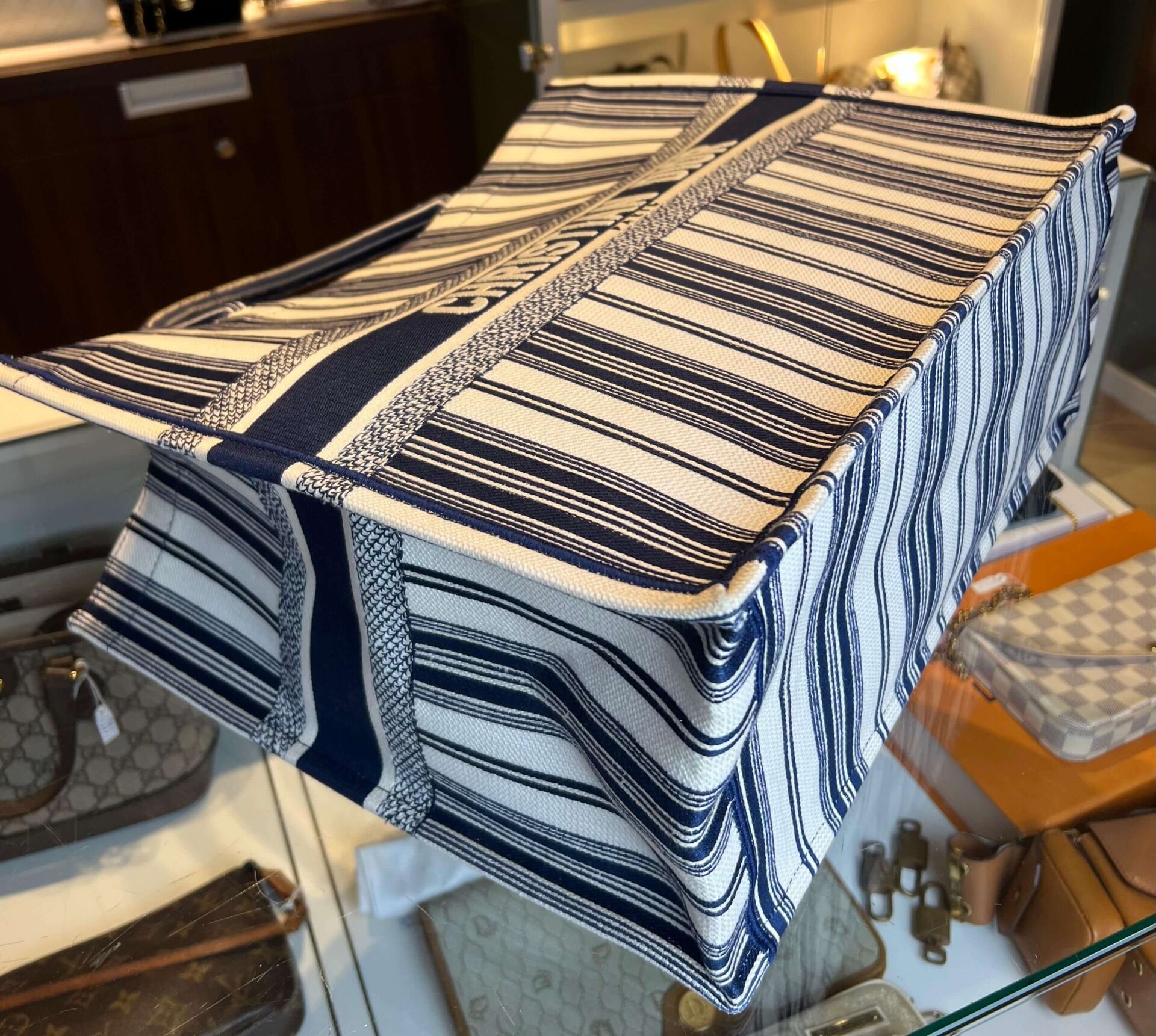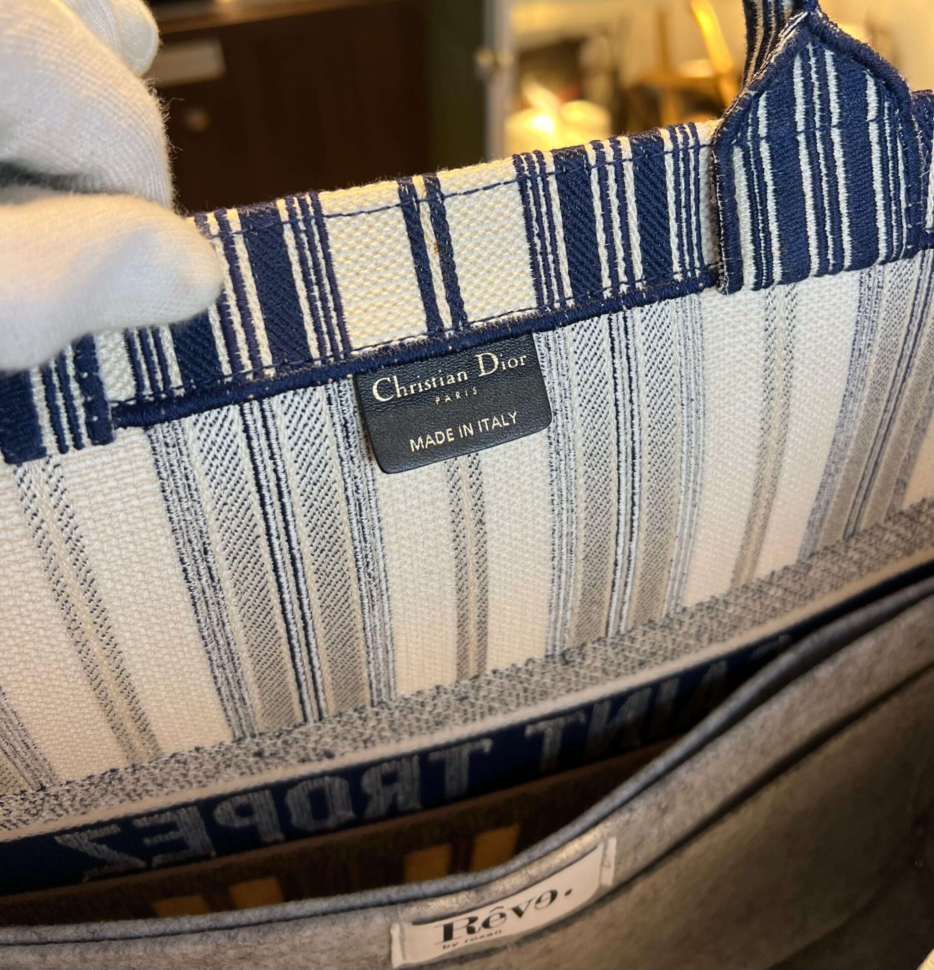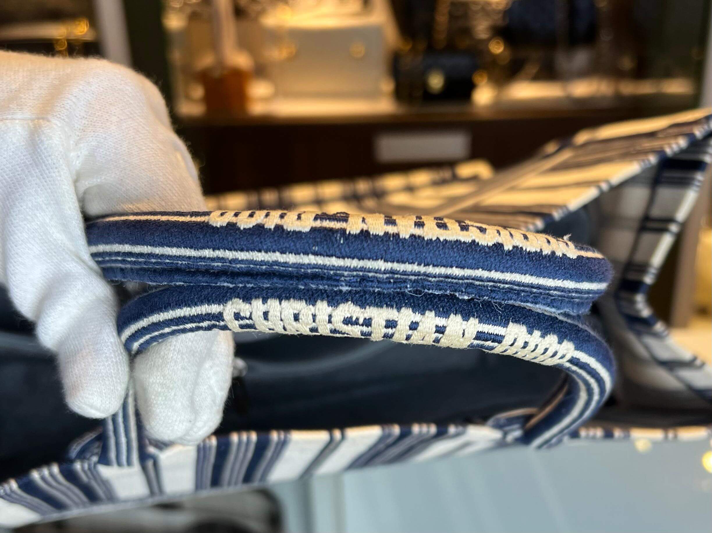Dior Large Book Tote in de uitvoering Saint Tropez. Ze is dan ook aangekocht in Saint Tropez! Ze komt uit het jaartal 2021 met alle toebehoren, behalve de doos. Ze is een zeer goede staat, enkel de handvatten zie je ietwat gebruikerssporen.