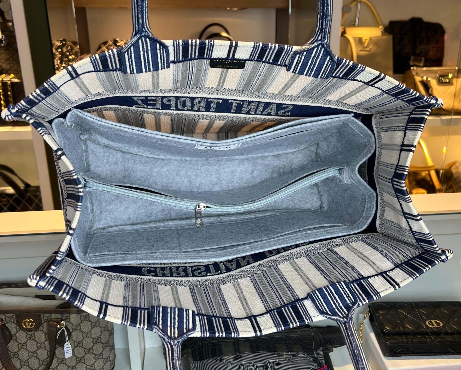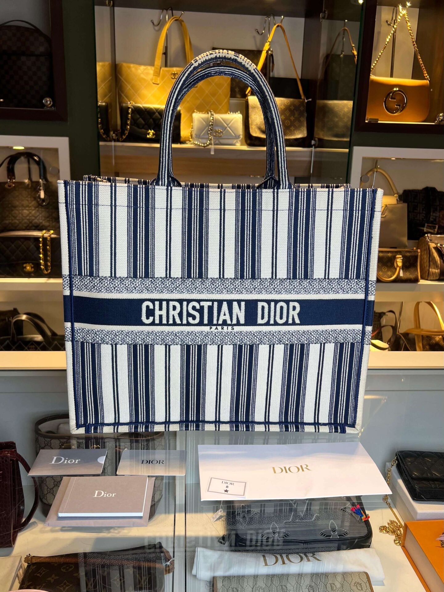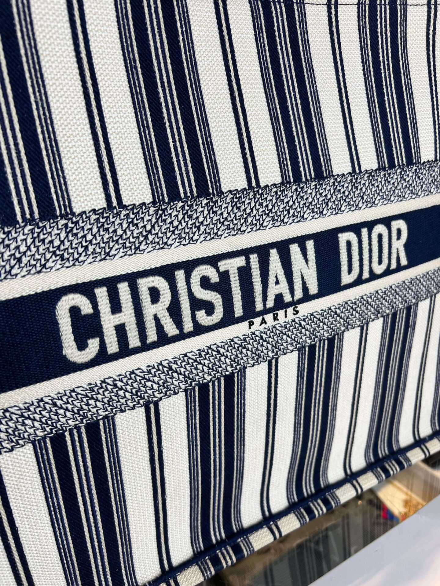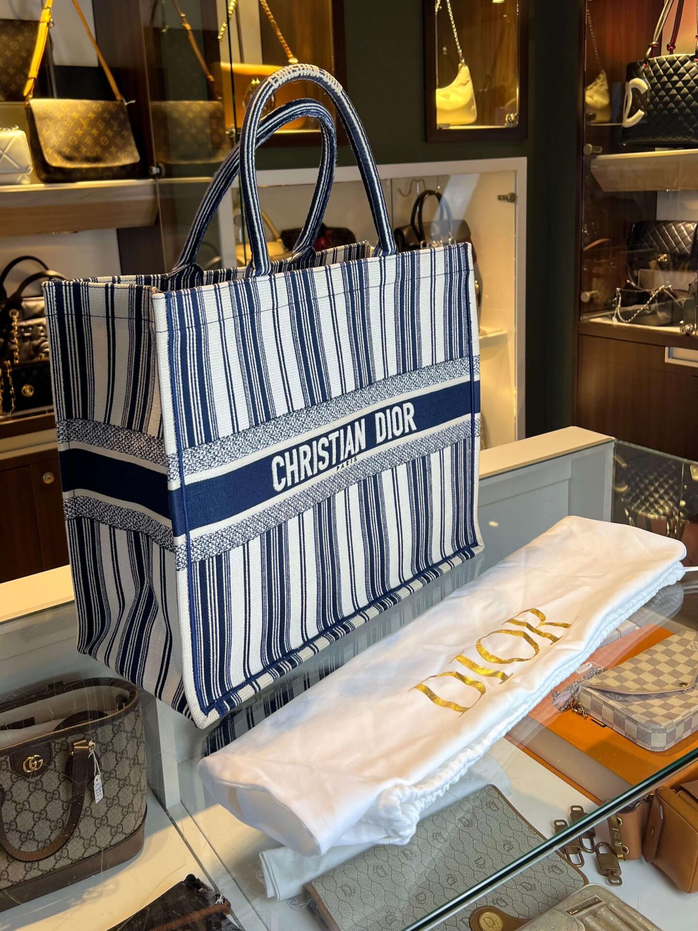 Dior Large Book Tote in de uitvoering Saint Tropez. Ze is dan ook aangekocht in Saint Tropez! Ze komt uit het jaartal 2021 met alle toebehoren, behalve de doos. Ze is een zeer goede staat, enkel de handvatten zie je ietwat gebruikerssporen.
