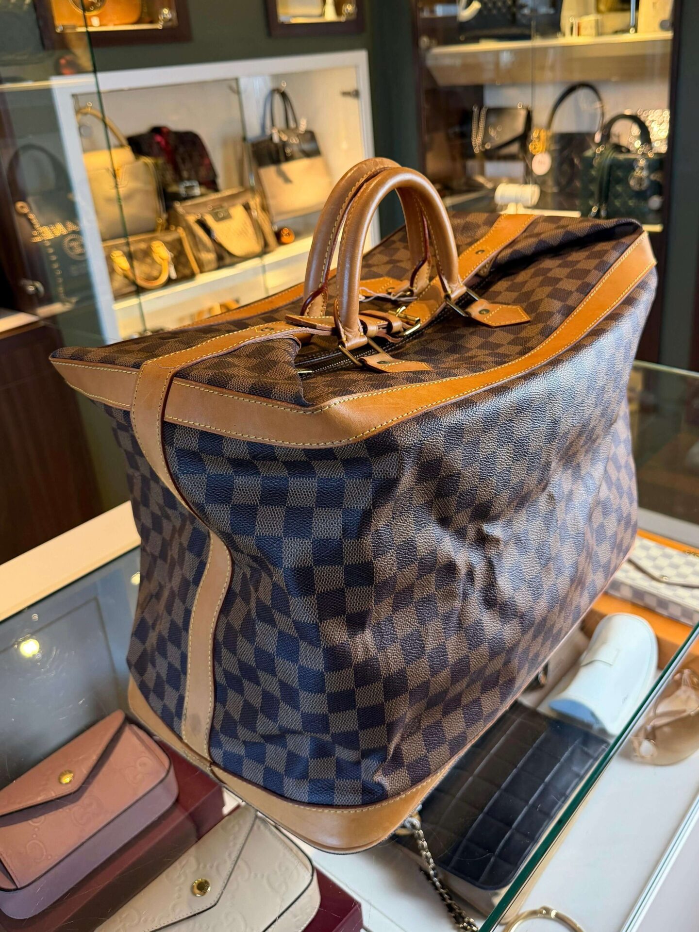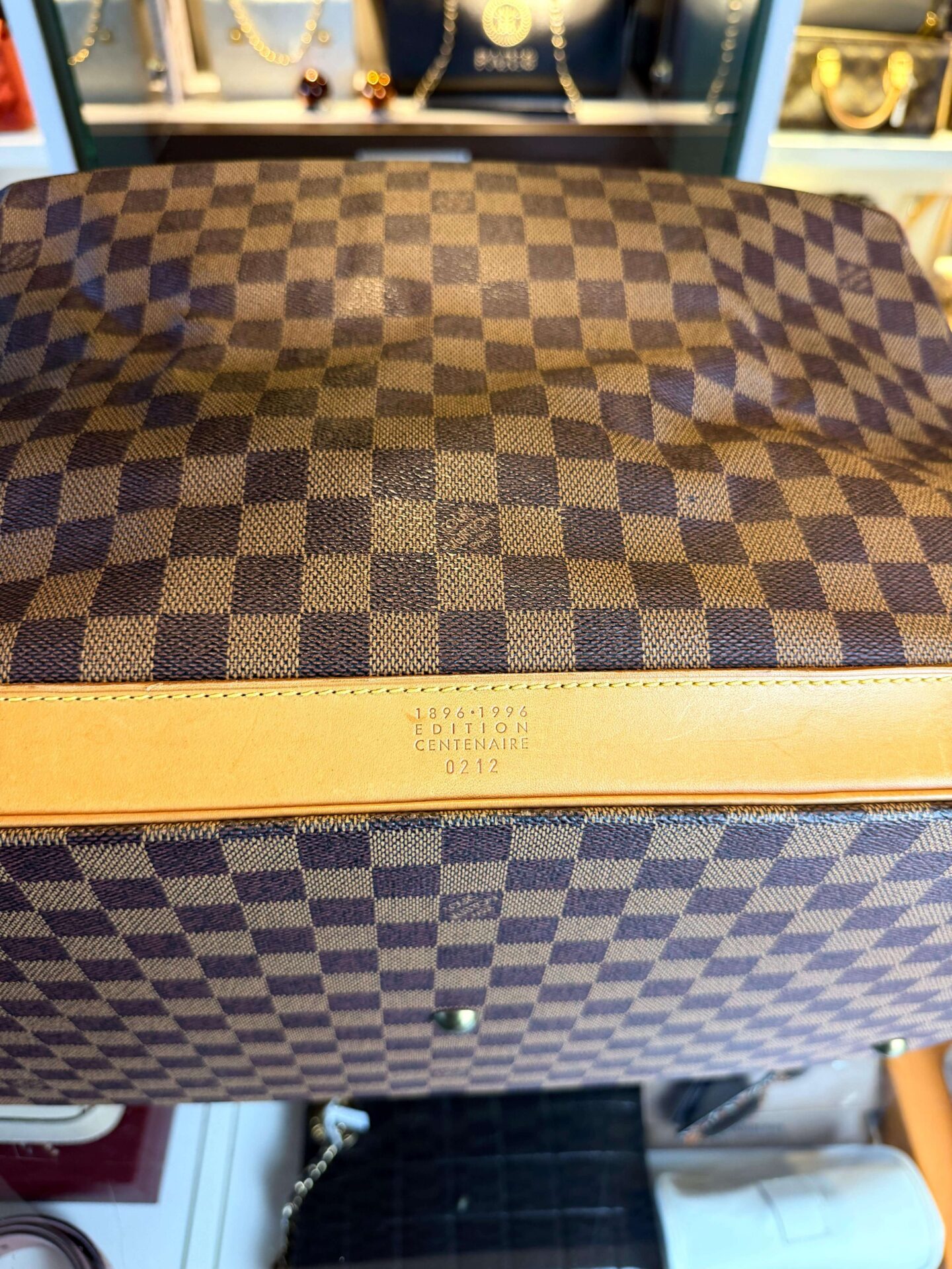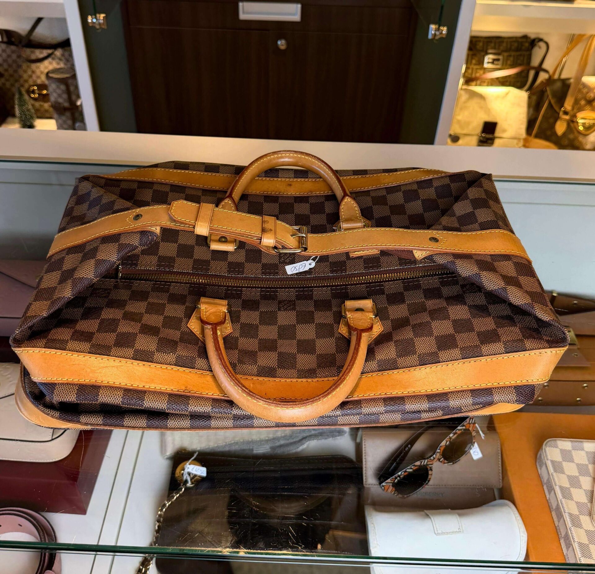 Louis Vuitton Cruiser handbag 45 in de kleur damier ebene. Vintage uit het jaartal 1996. Een erg gaaf stuk, welk ook gelimiteerd zijn. Dit is nummer 0212, zie de foto. Een prachtig stuk om mee te reizen! Geheel opvouwbaar als deze niet gebruikt wordt. Zie de laatste foto!