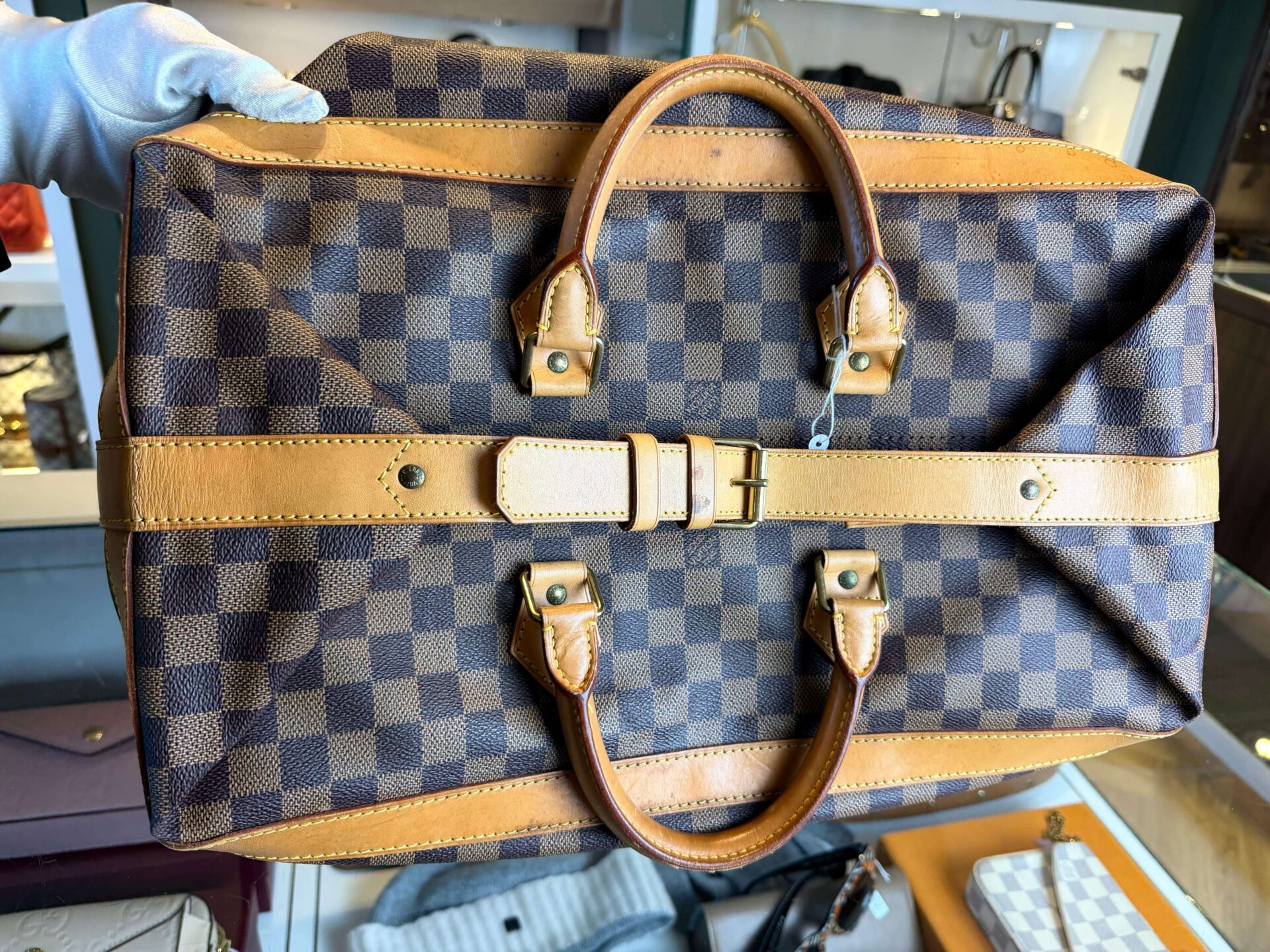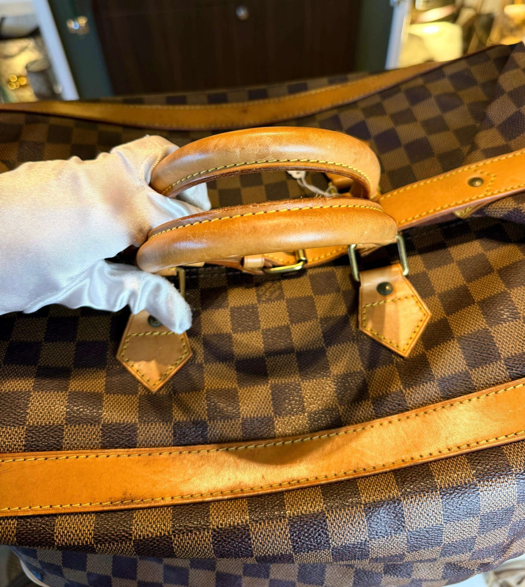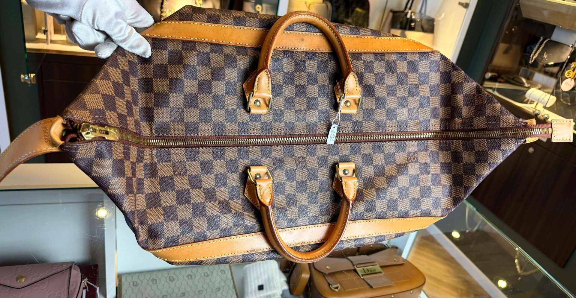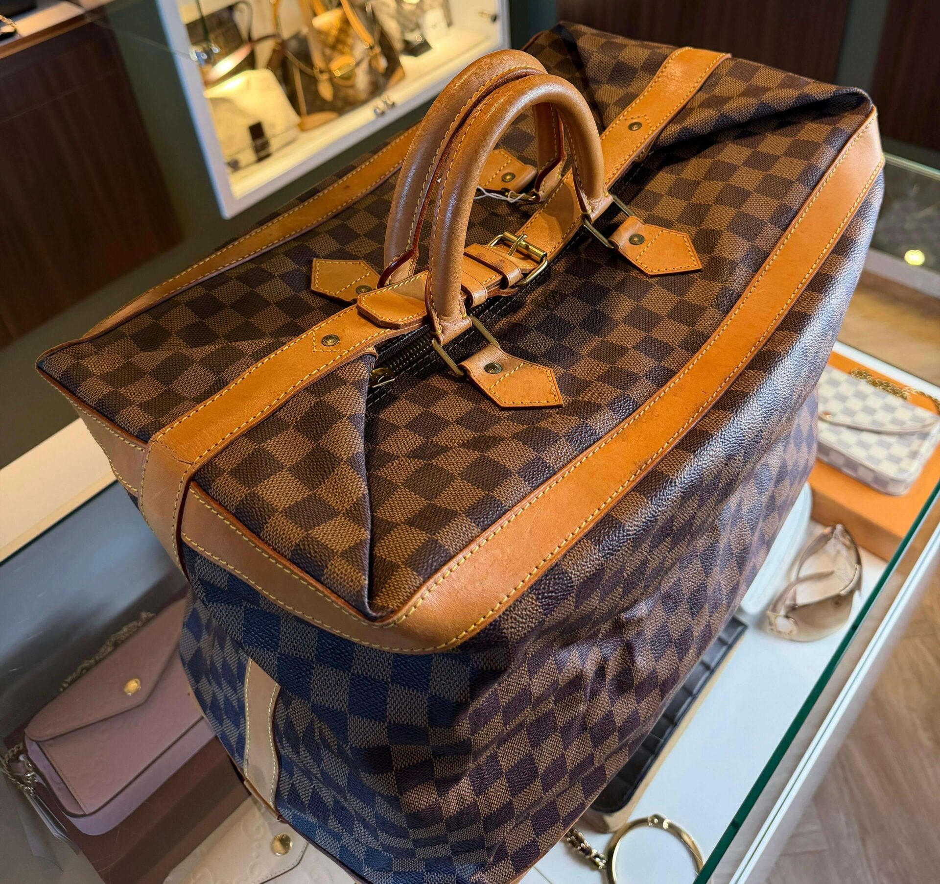 Louis Vuitton Cruiser handbag 45 in de kleur damier ebene. Vintage uit het jaartal 1996. Een erg gaaf stuk, welk ook gelimiteerd zijn. Dit is nummer 0212, zie de foto. Een prachtig stuk om mee te reizen! Geheel opvouwbaar als deze niet gebruikt wordt. Zie de laatste foto!