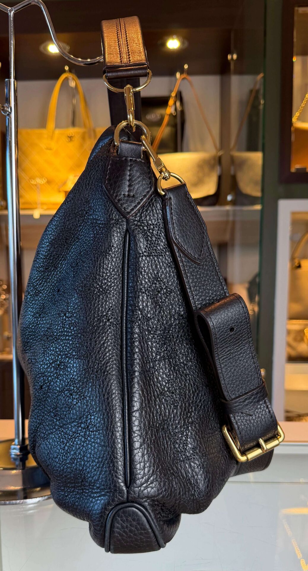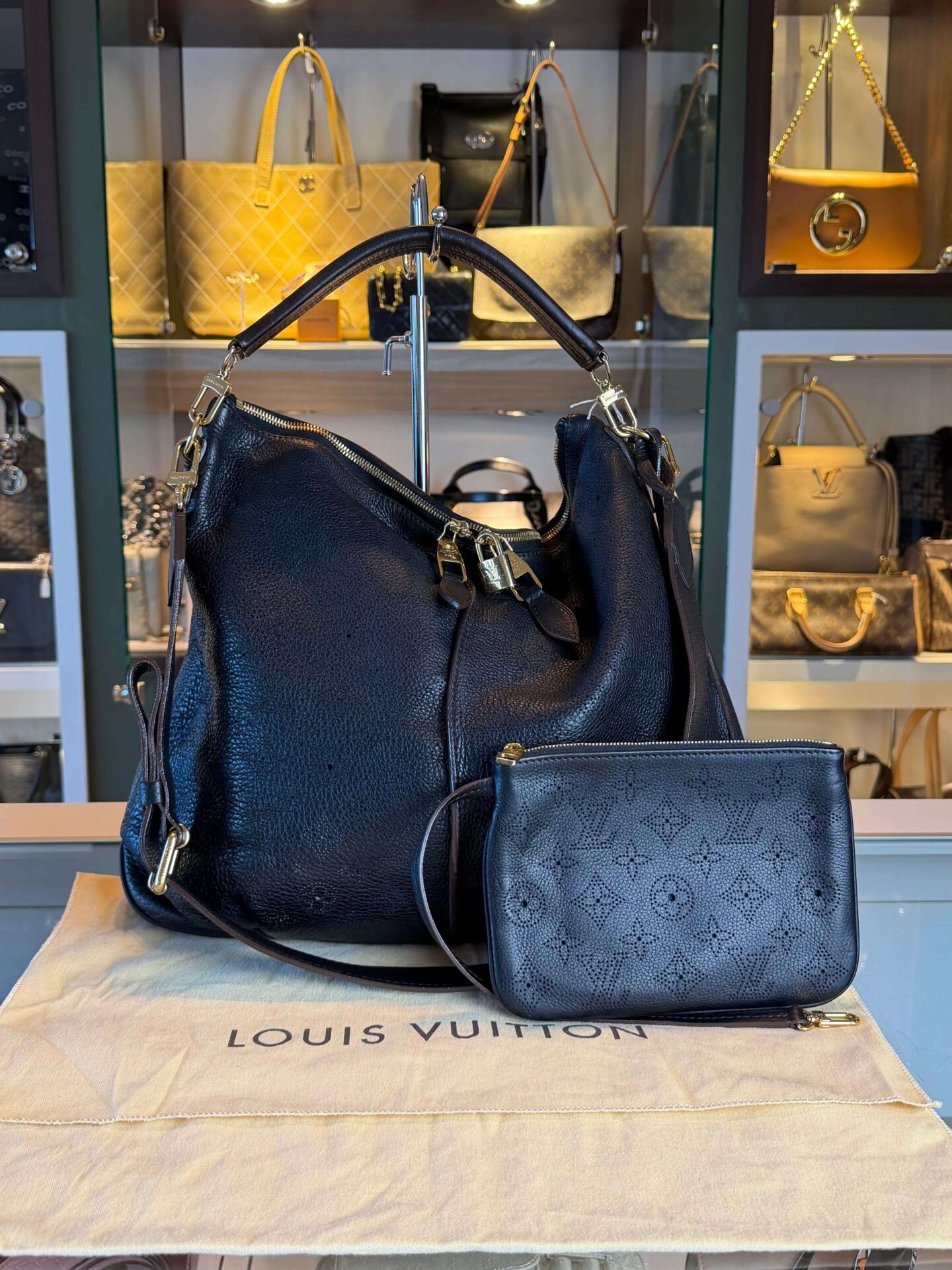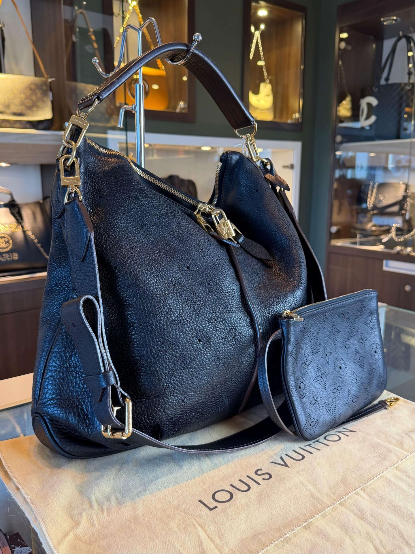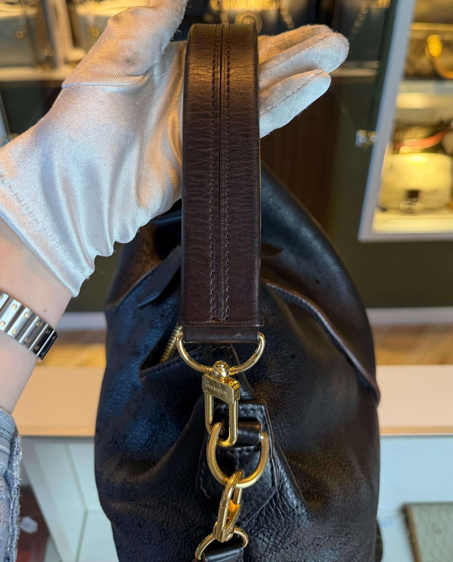 Louis Vuitton Mahina Selene MM in de kleur zwart monogram. Ze is gemaakt van het prachtige Mahina leder. Ze komt ook met de bijbehorende pouch. Ze heeft donkerbruine accenten, zoals de edging en het lederen handvat. Verder is de hardware nog in zeer goede staat en helemaal in tact.